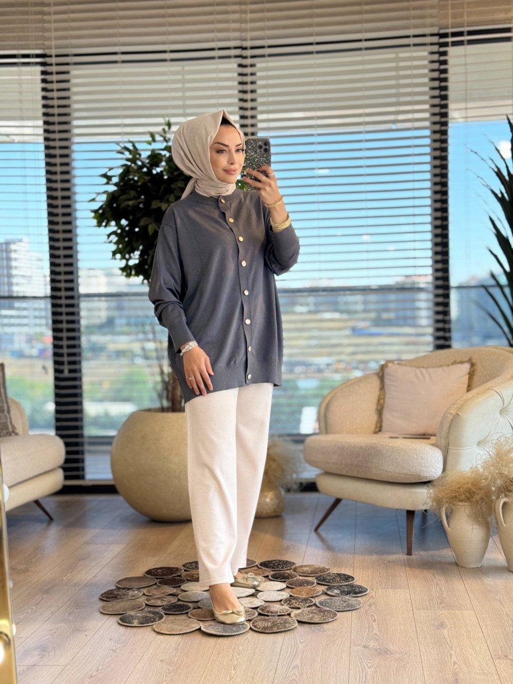 40969 Gold Düğmeli Hırka Füme