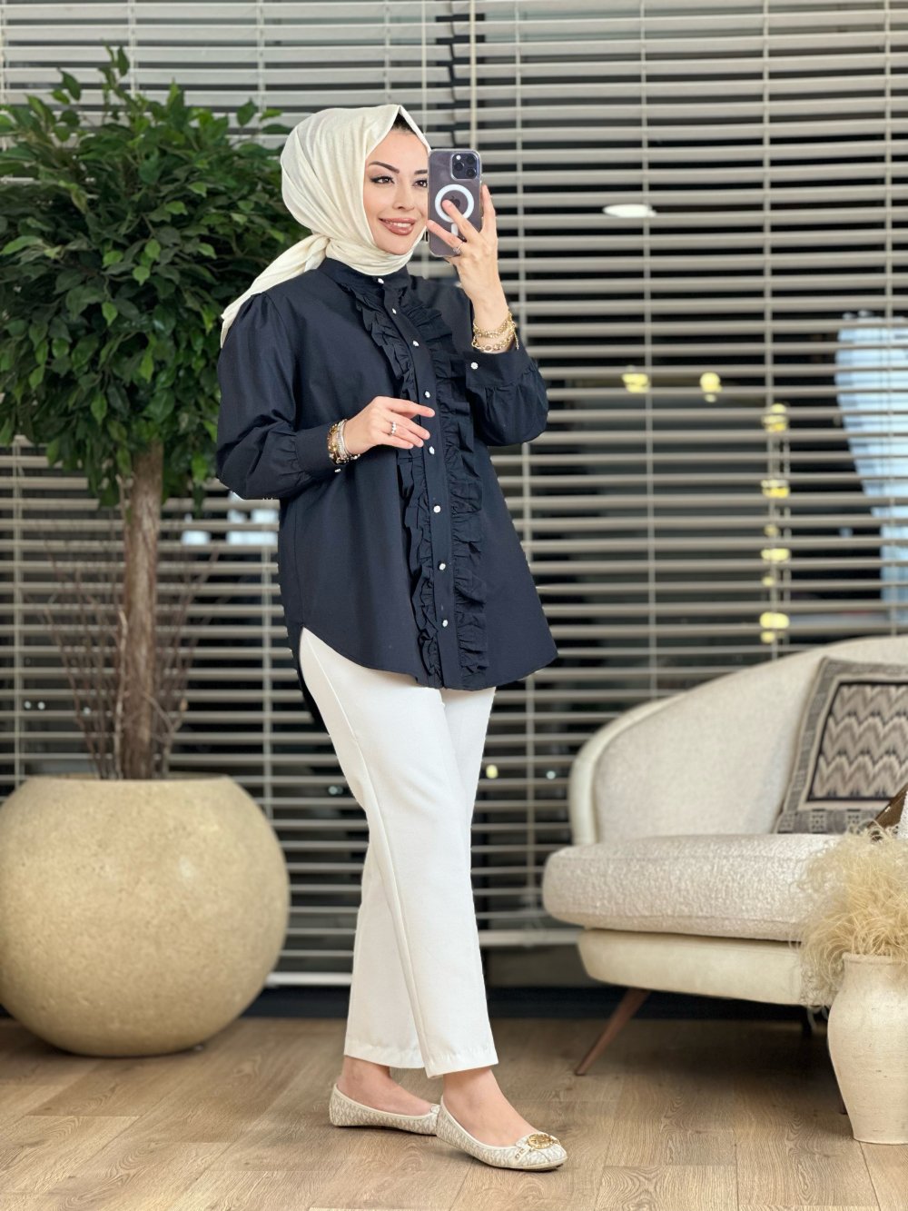 4101 Patı Fırfır Detaylı Gömlek Siyah