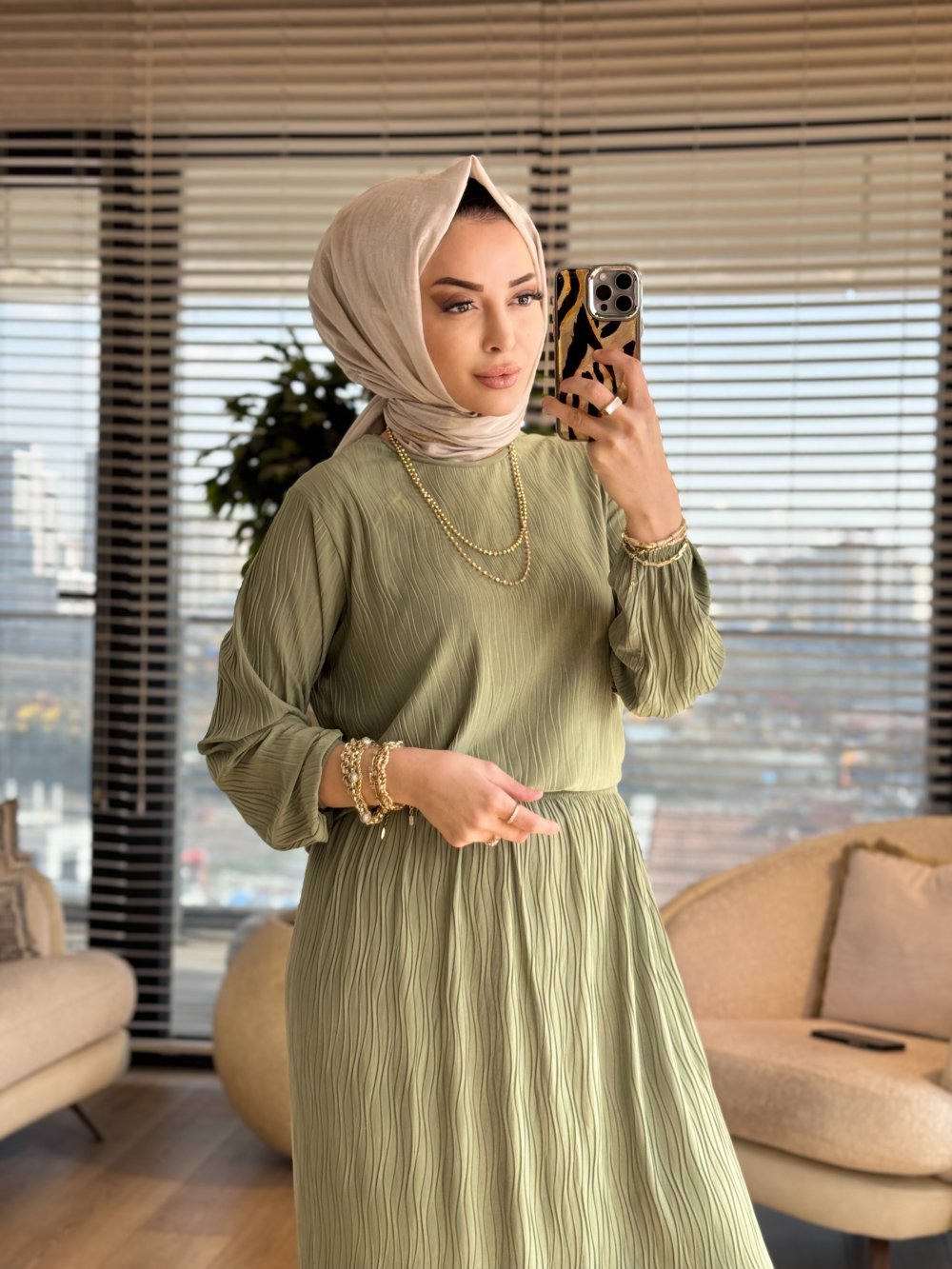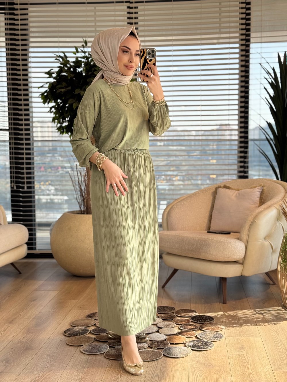 4209 Manolya Kraşlı Etekli Takım Çağla