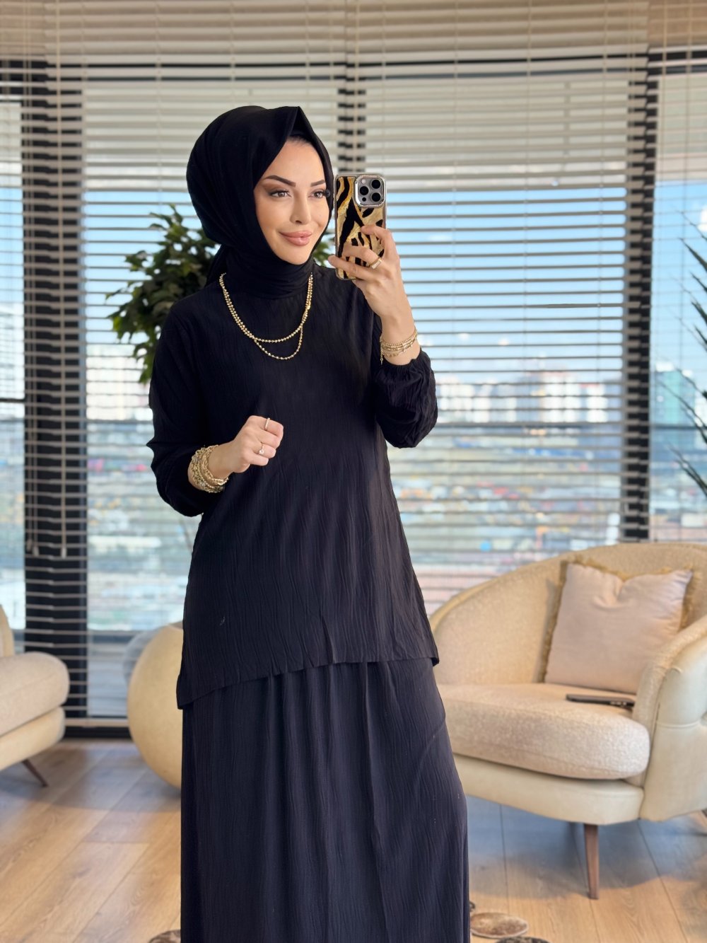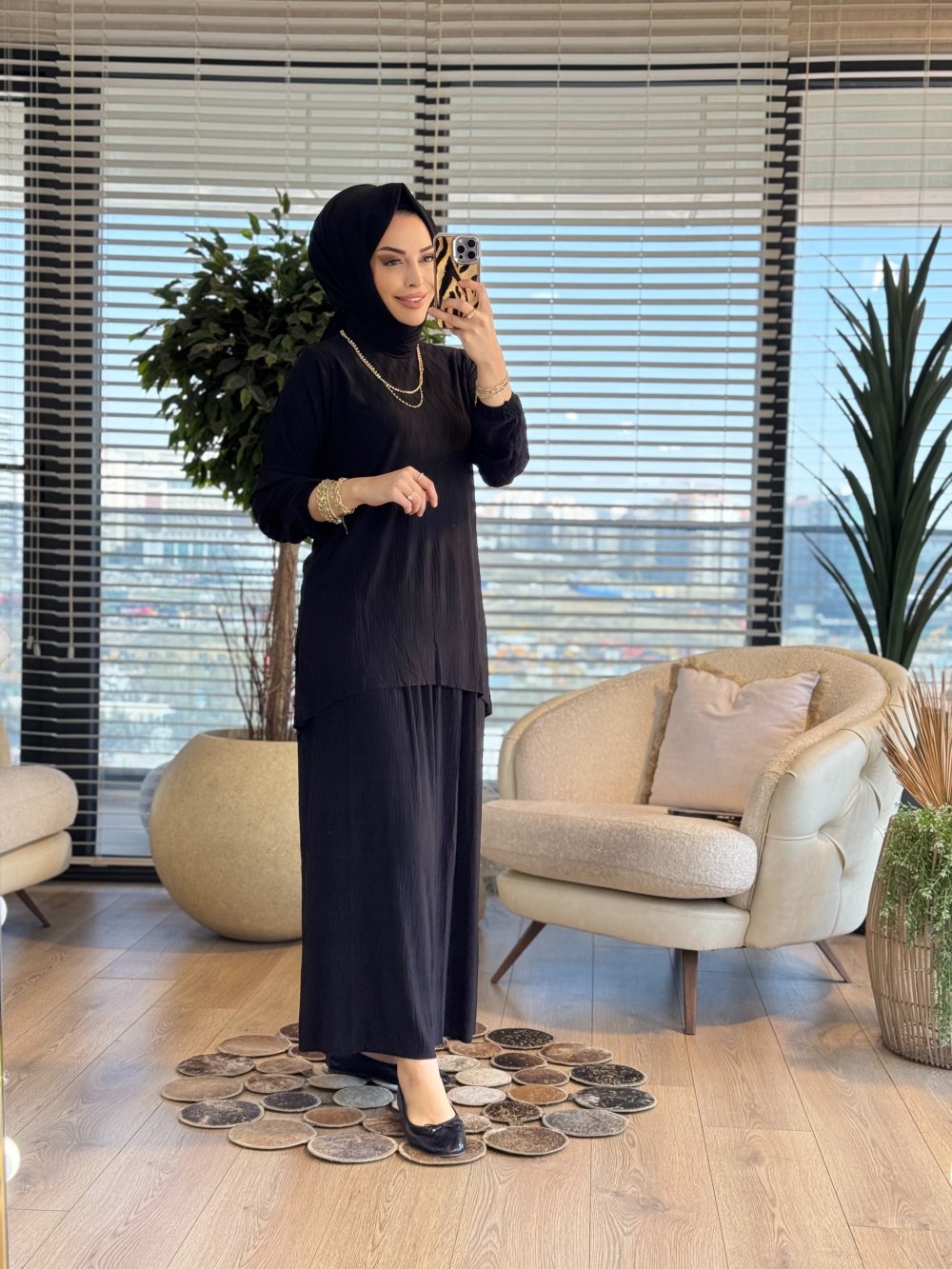 4209 Manolya Kraşlı Etekli Takım Siyah