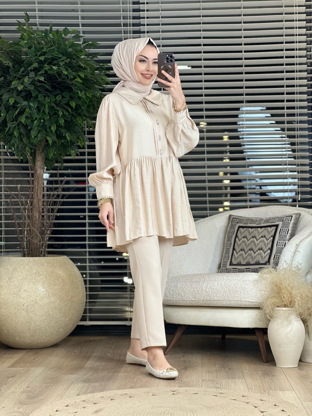4209 Yaka Kenarı Fisto Tunik Kahve