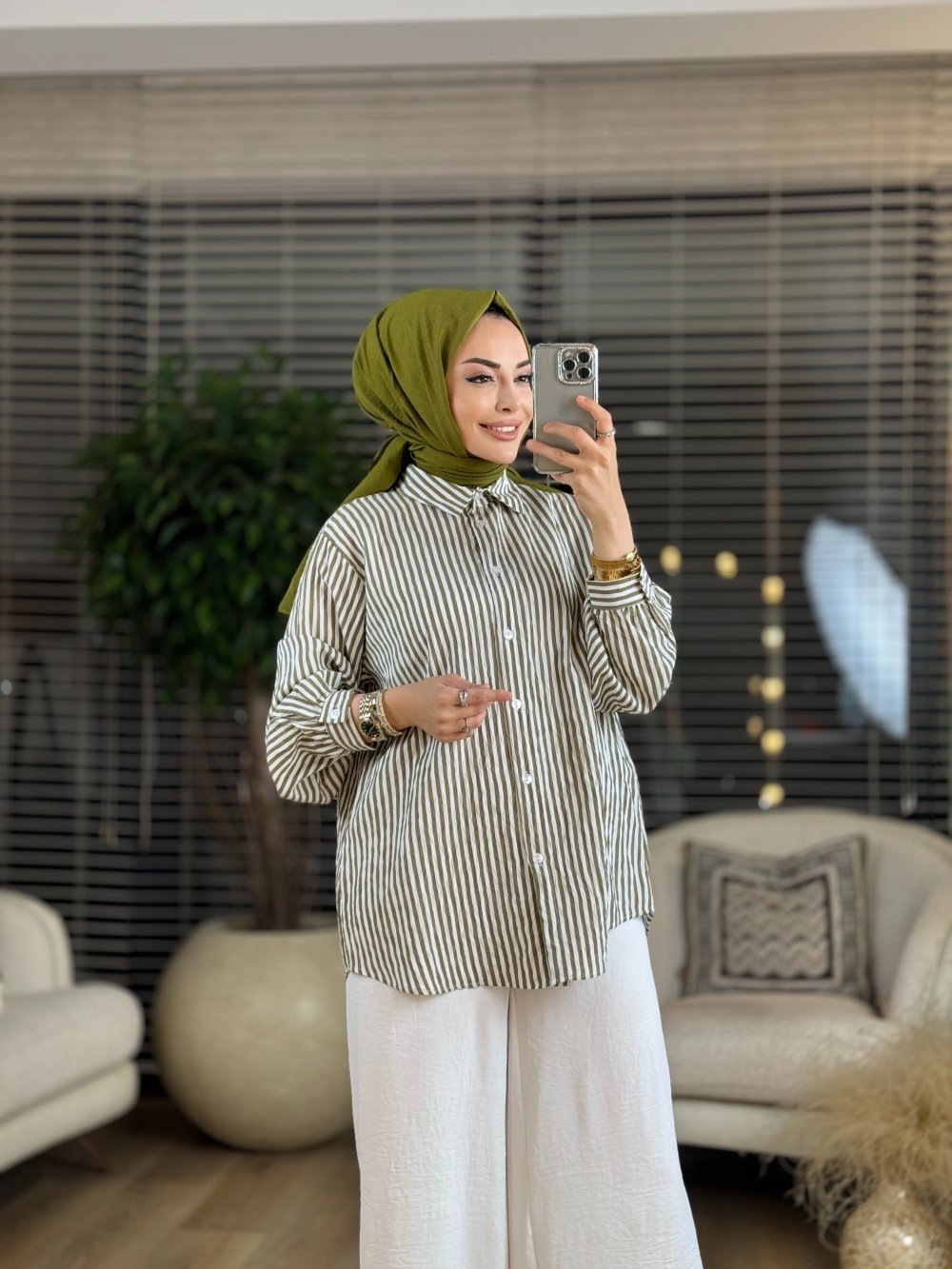4256 Çizgili Gömlek Haki