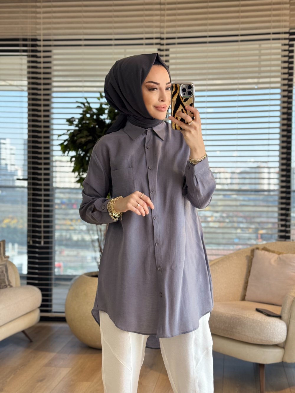 4373 Tek Cepli Gömlek Gri
