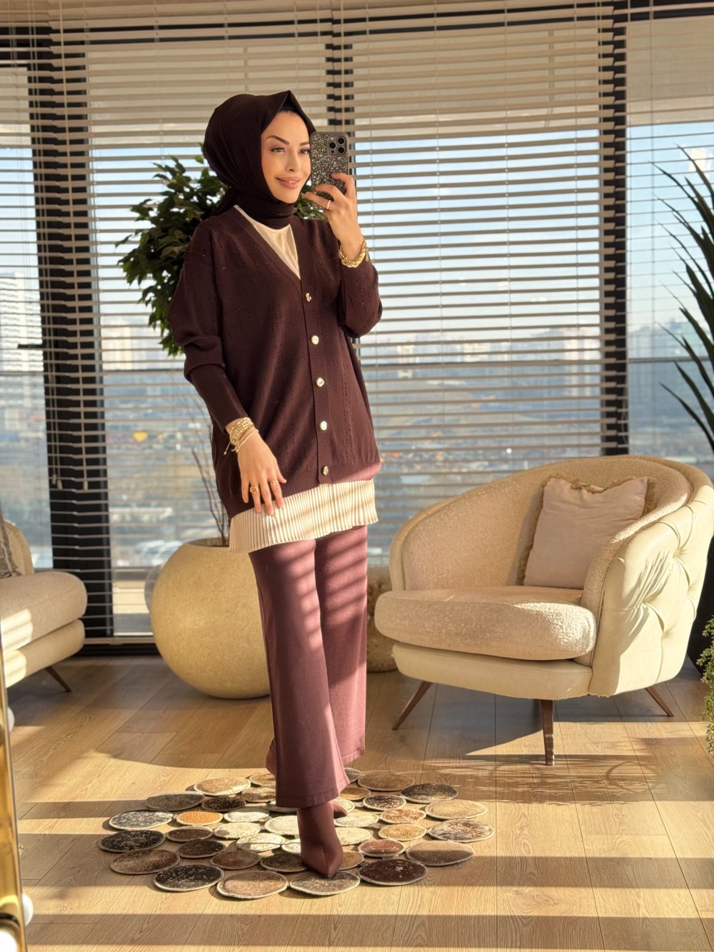 44195 Üstü Sim Dalga Desenli Hırka Kahve
