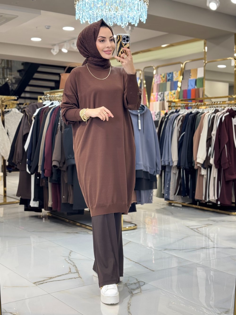 44221 Manşeti Lastikli Triko Tunik Kahve