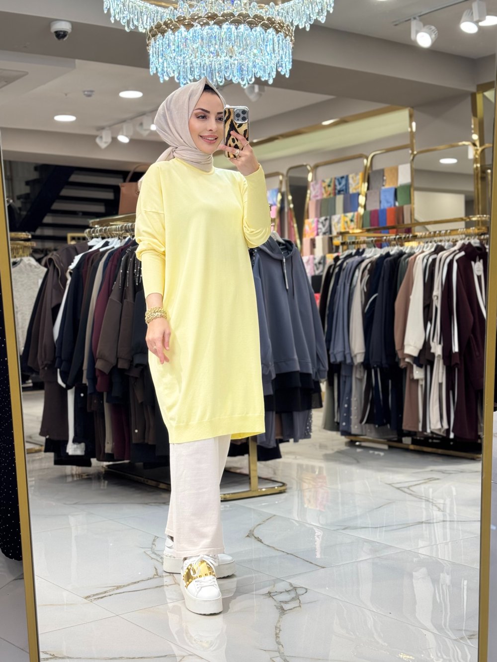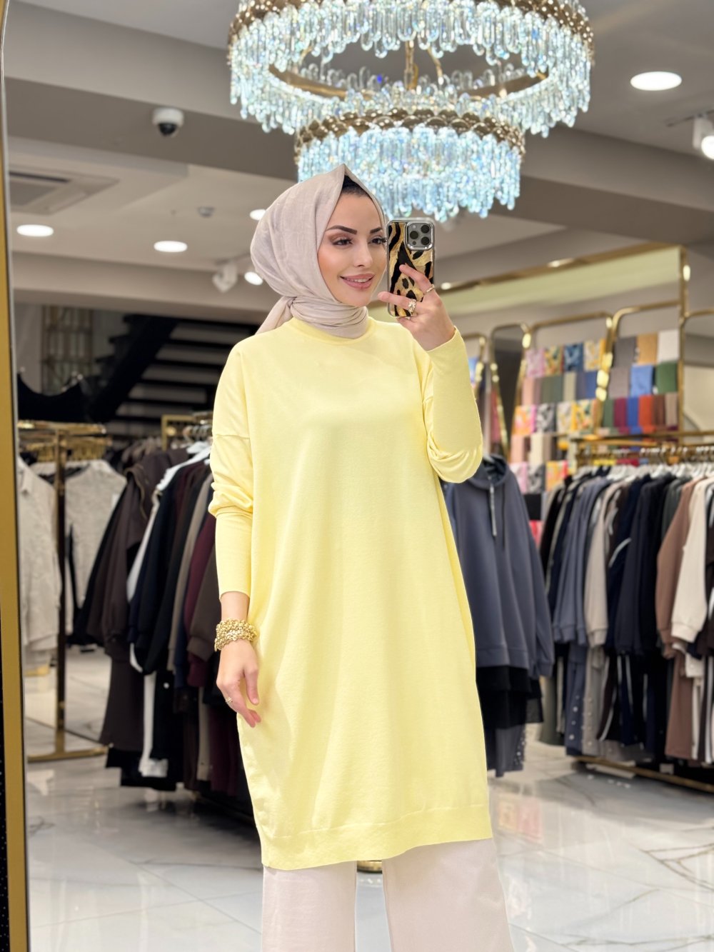44221 Manşeti Lastikli Triko Tunik Sarı