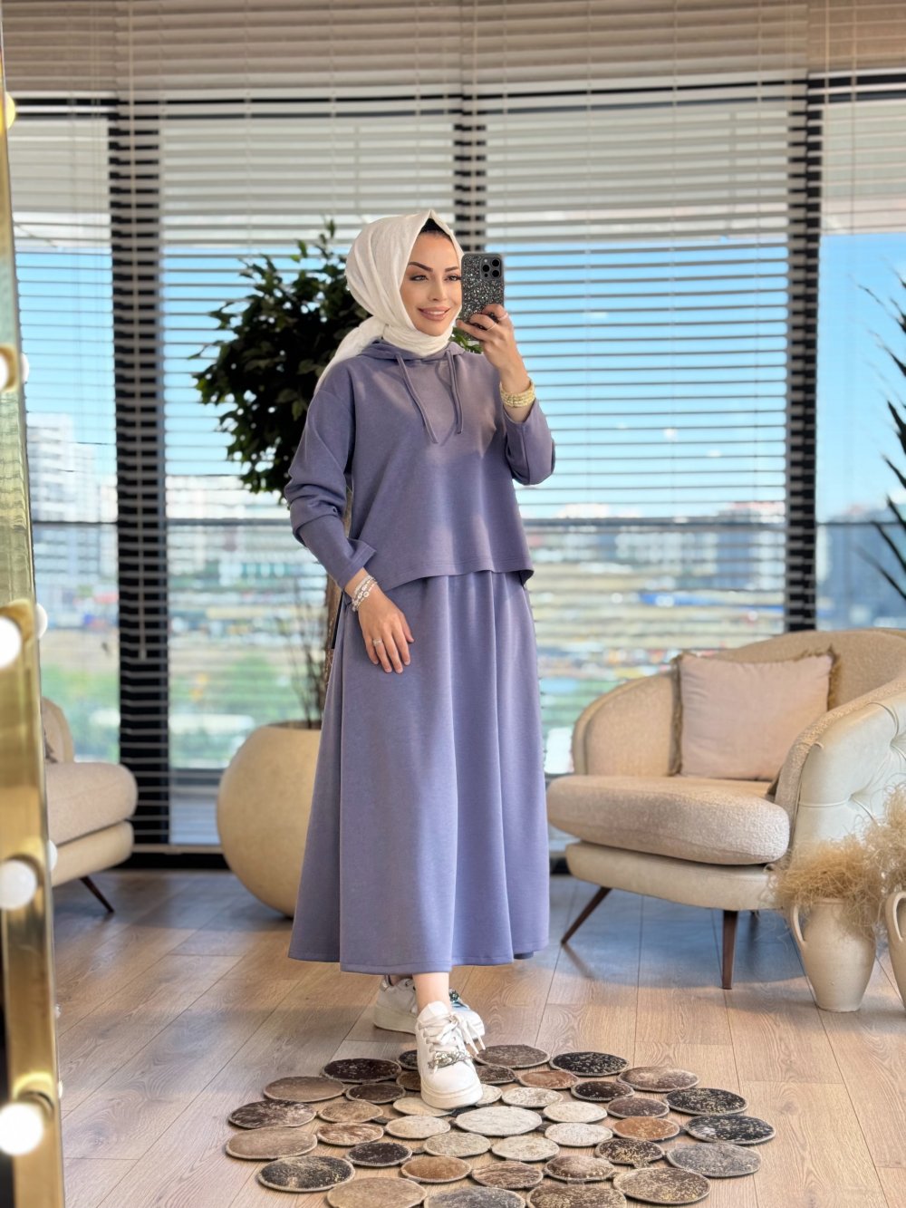 4425 Oysho Kapşonlu Etekli Takım İndigo