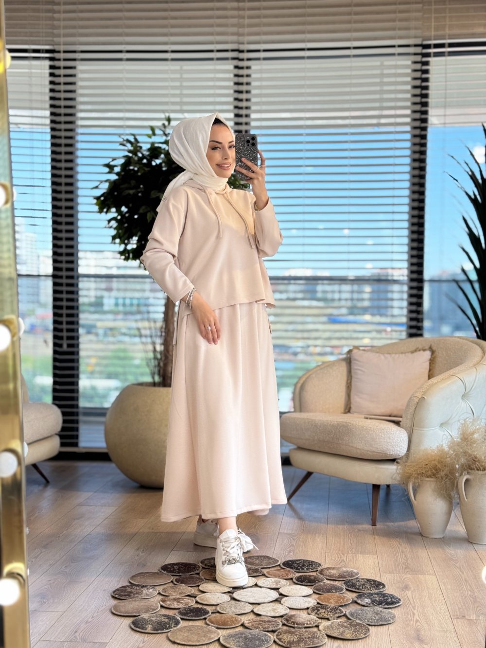 4425 Oysho Kapşonlu Etekli Takım Krem