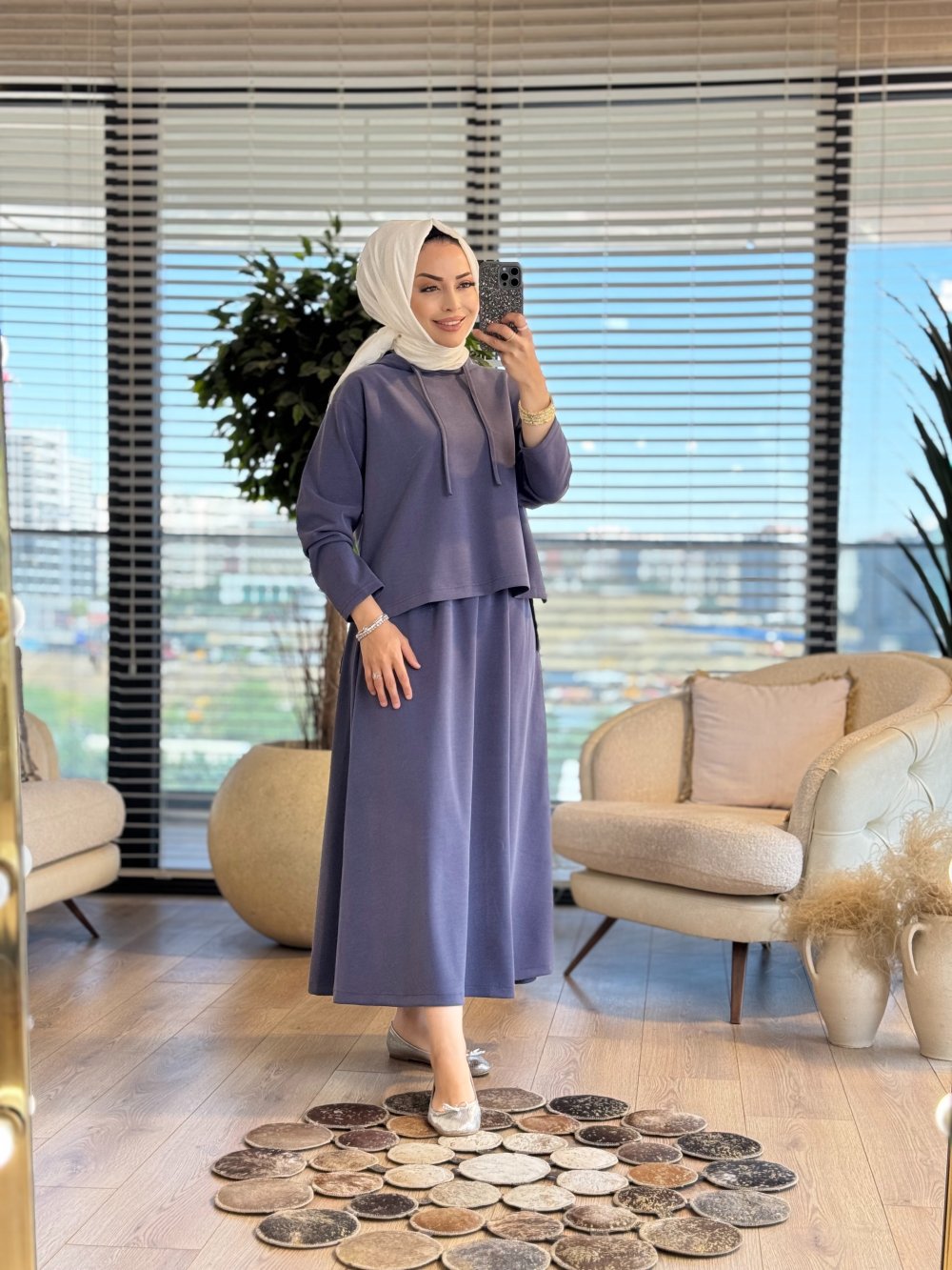 4425 Oysho Kapşonlu Etekli Takım Lacivert