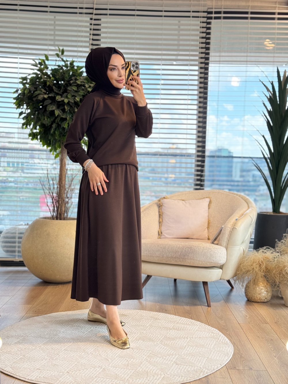 4425 Yarasa Kol Etekli Oysho Takım Kahve