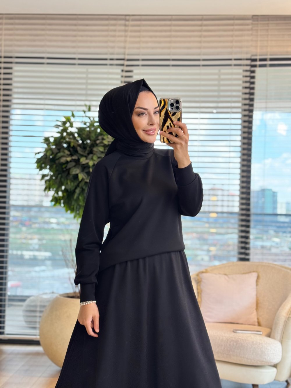4425 Yarasa Kol Etekli Oysho Takım Siyah