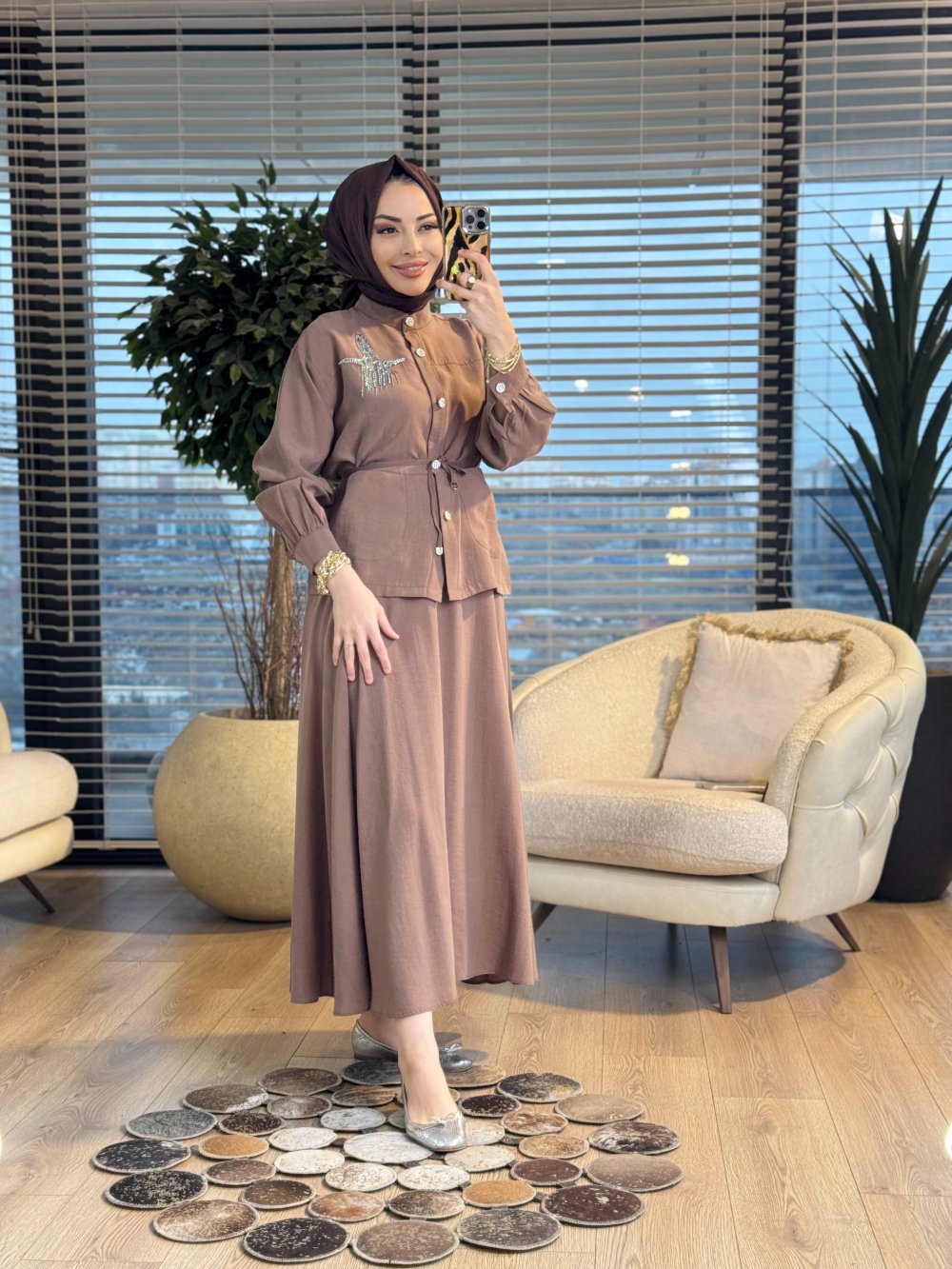 4443 Sol Gögüs Kuş İşli Takım Kahve