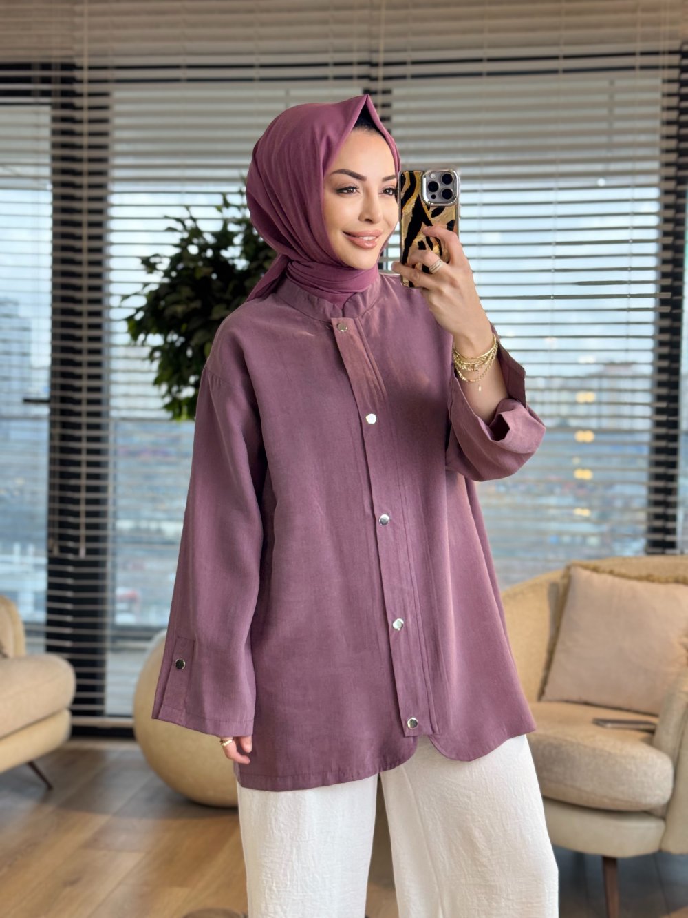 4445 Önü Fermuarlı Yakasız Kap Mürdüm