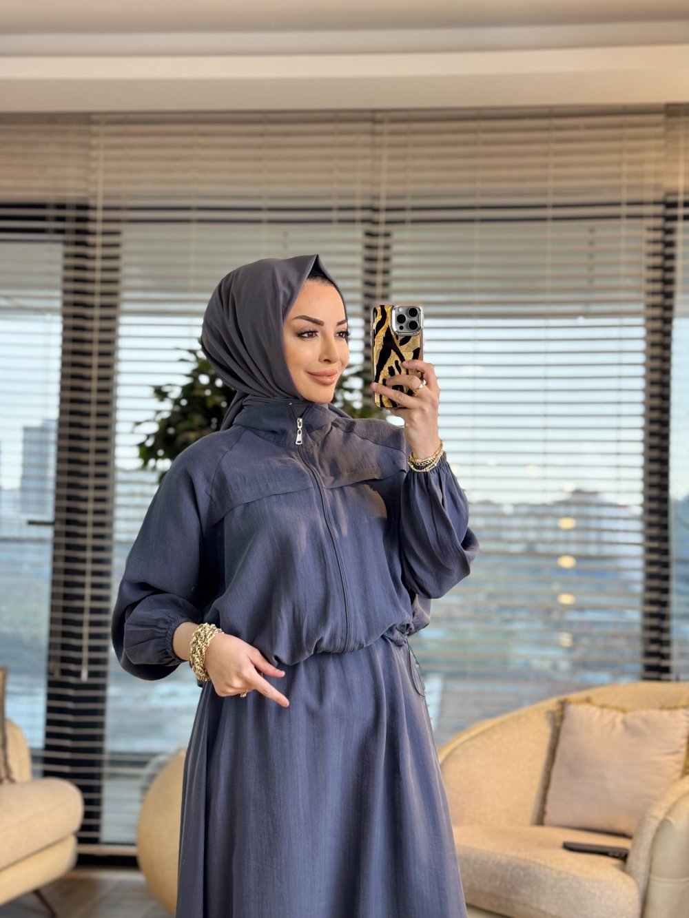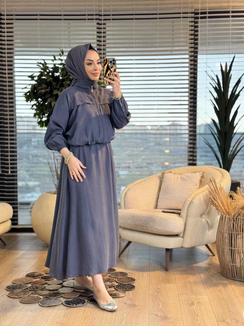 4454 Roba Parçalı Ön Fermuarlı Takım Gri