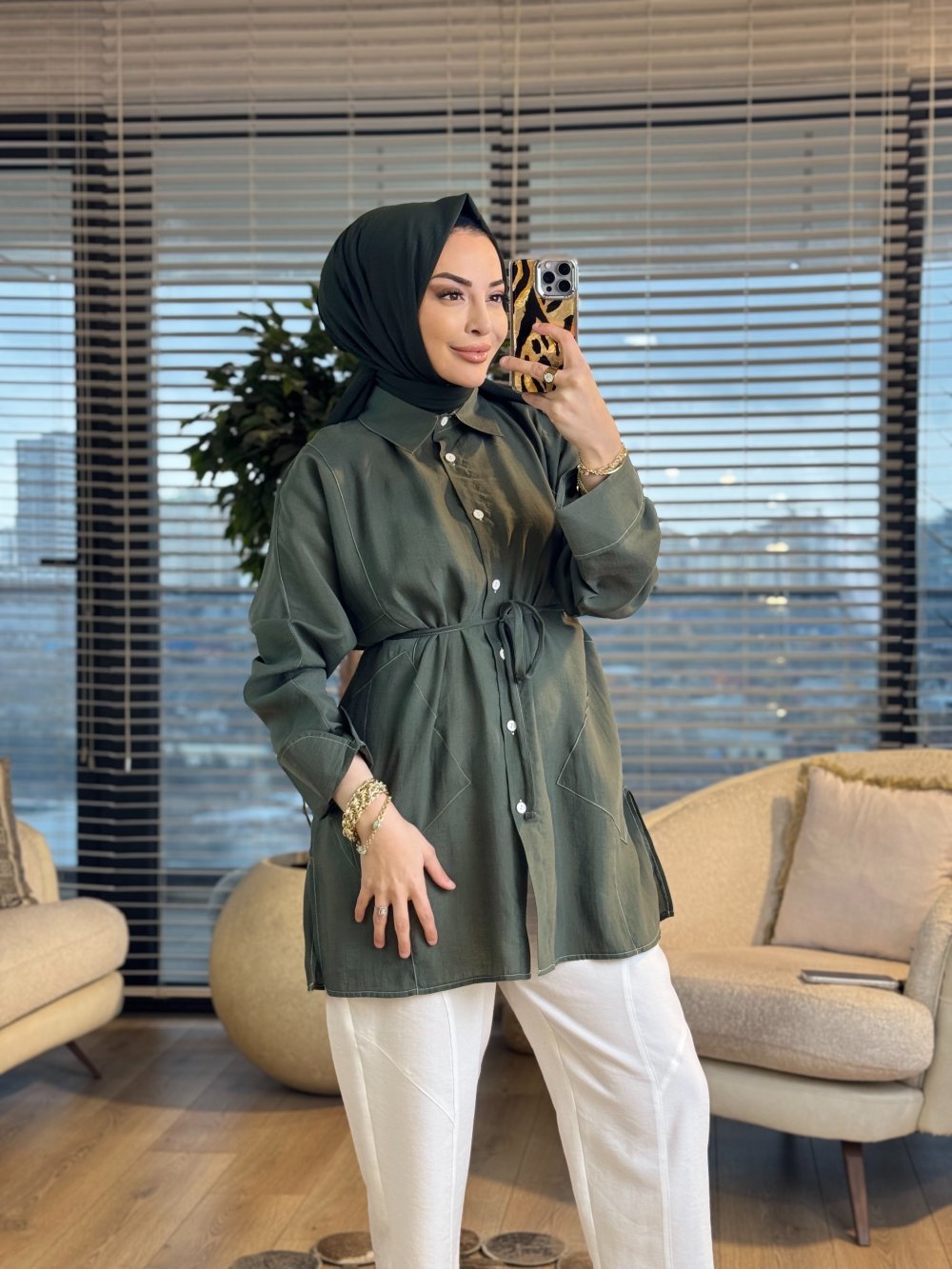 4468 Cepli Kolu Katlamalı Gömlek Haki
