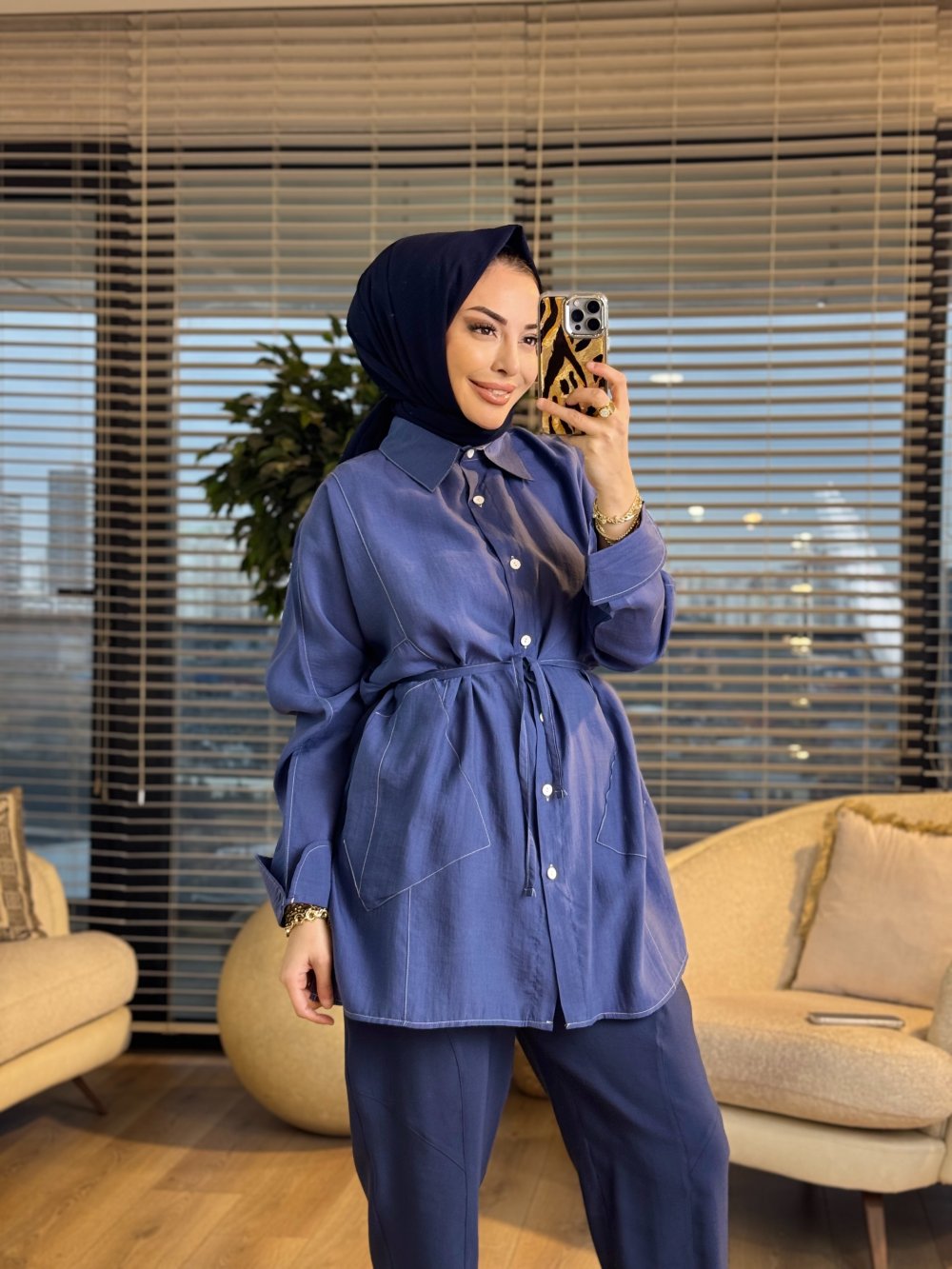 4468 Cepli Kolu Katlamalı Gömlek İndigo