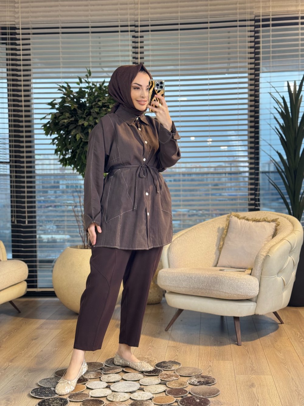4468 Cepli Kolu Katlamalı Gömlek Kahve