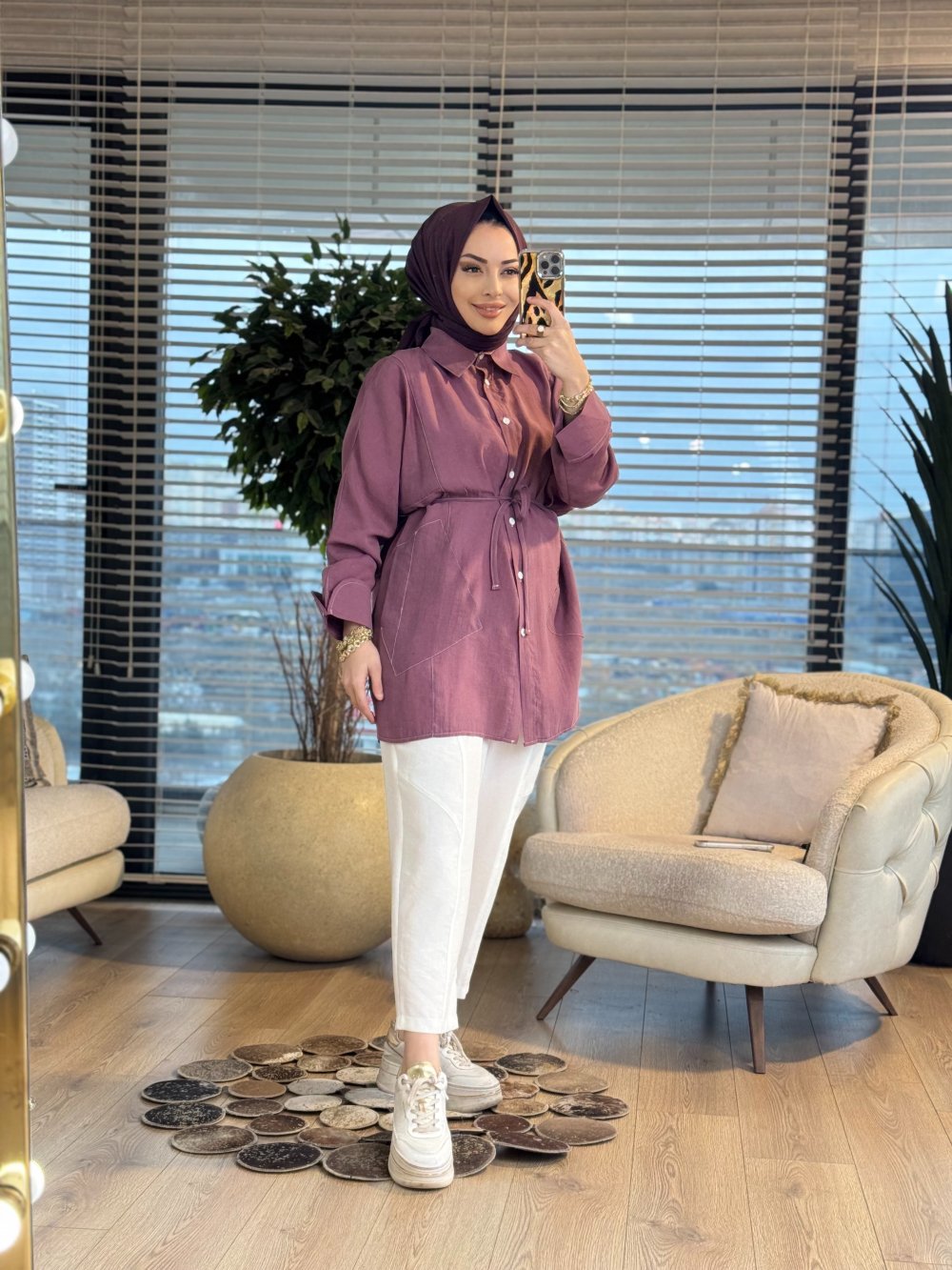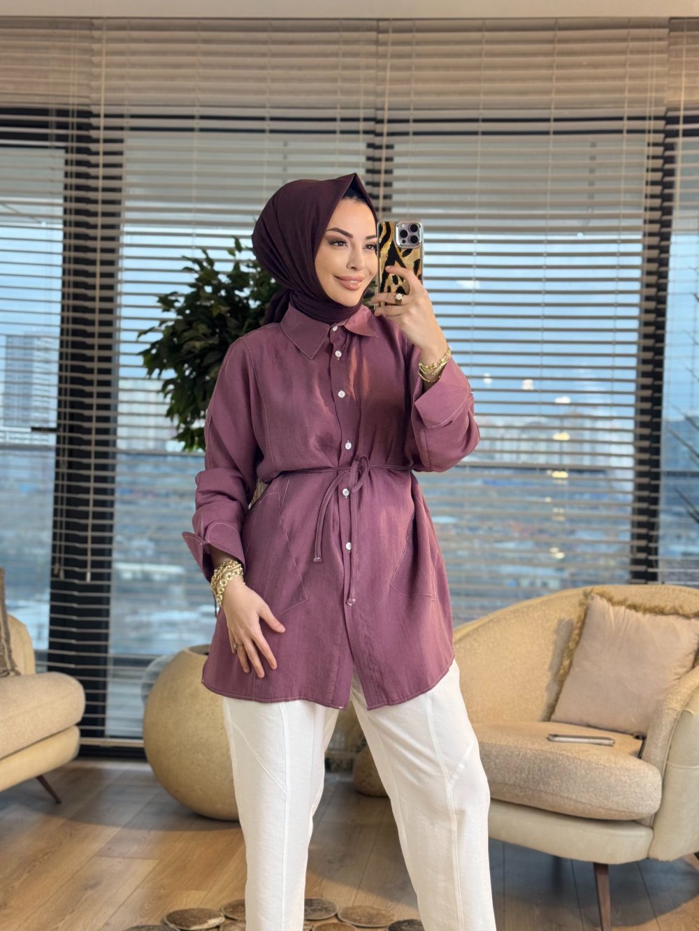 4468 Cepli Kolu Katlamalı Gömlek Mürdüm