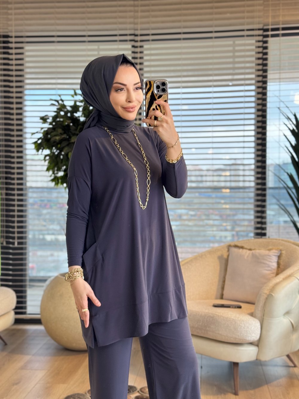 5015 Yanları Cepli Sandy Takım Antrasit