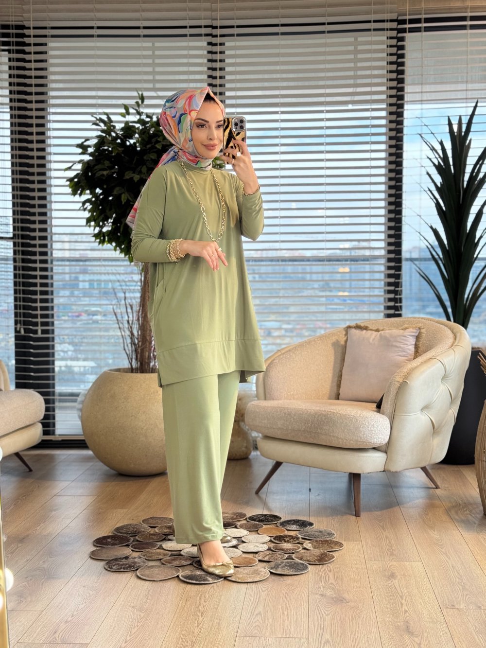 5015 Yanları Cepli Sandy Takım Çağla