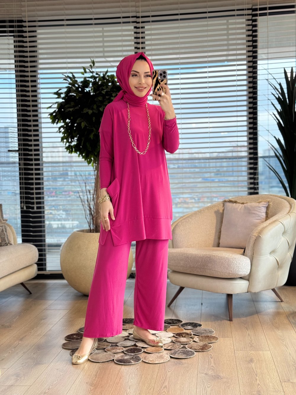 5015 Yanları Cepli Sandy Takım Fuşya
