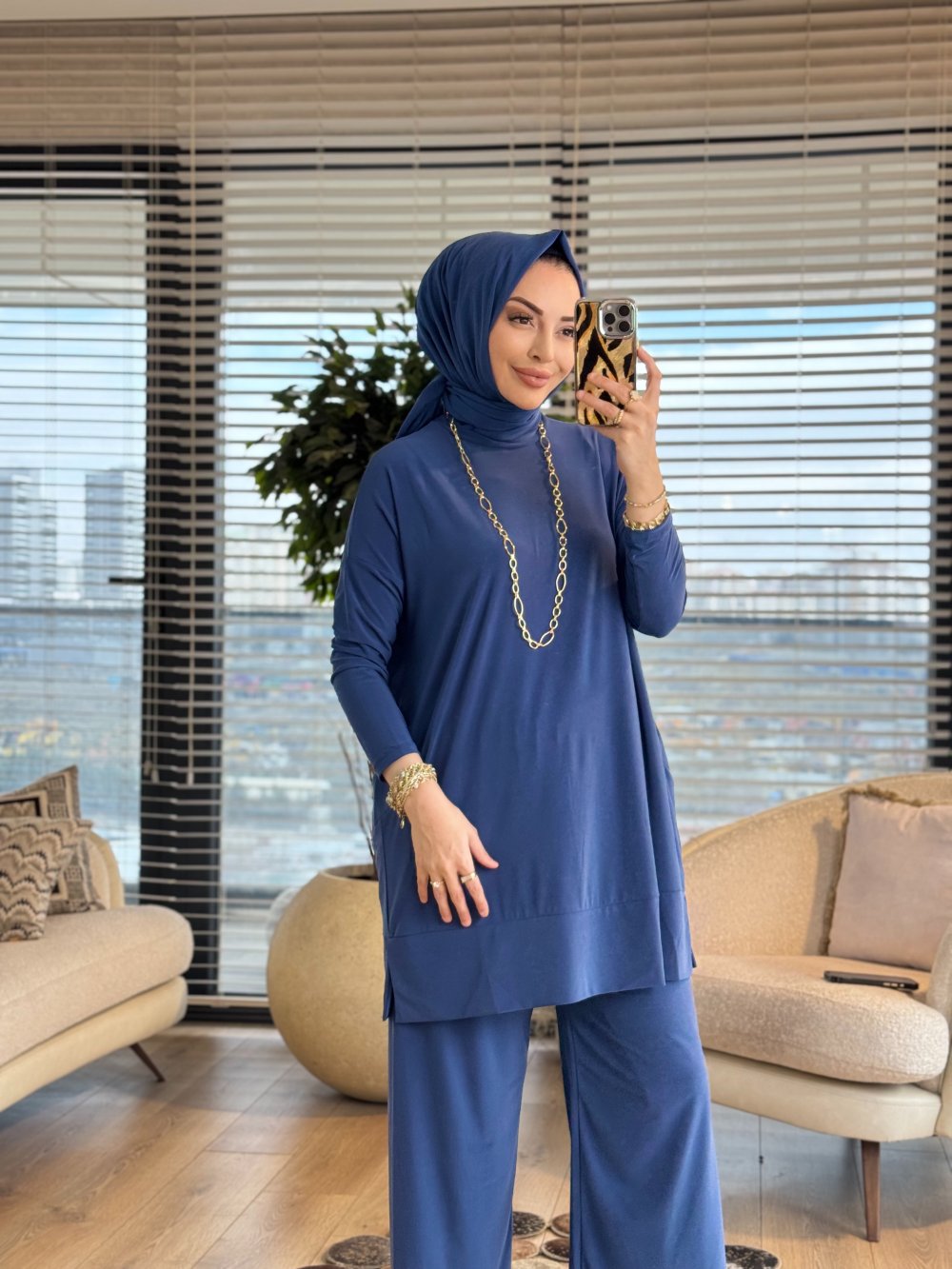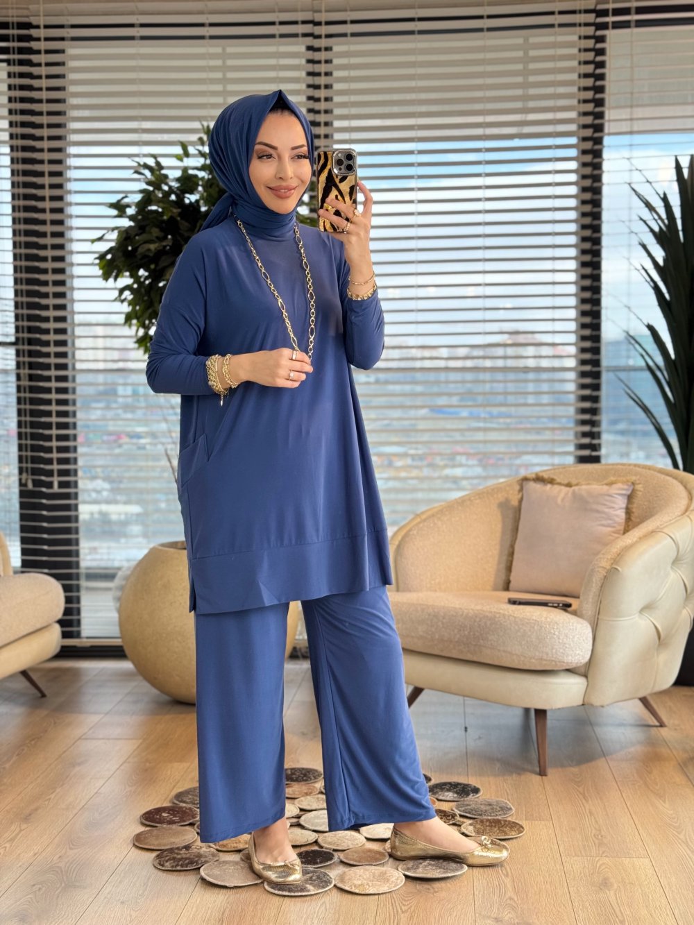 5015 Yanları Cepli Sandy Takım İndigo