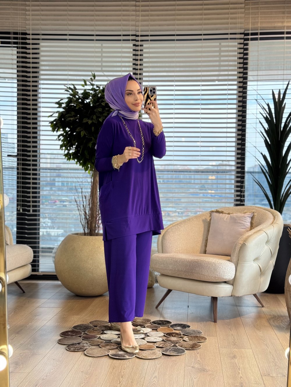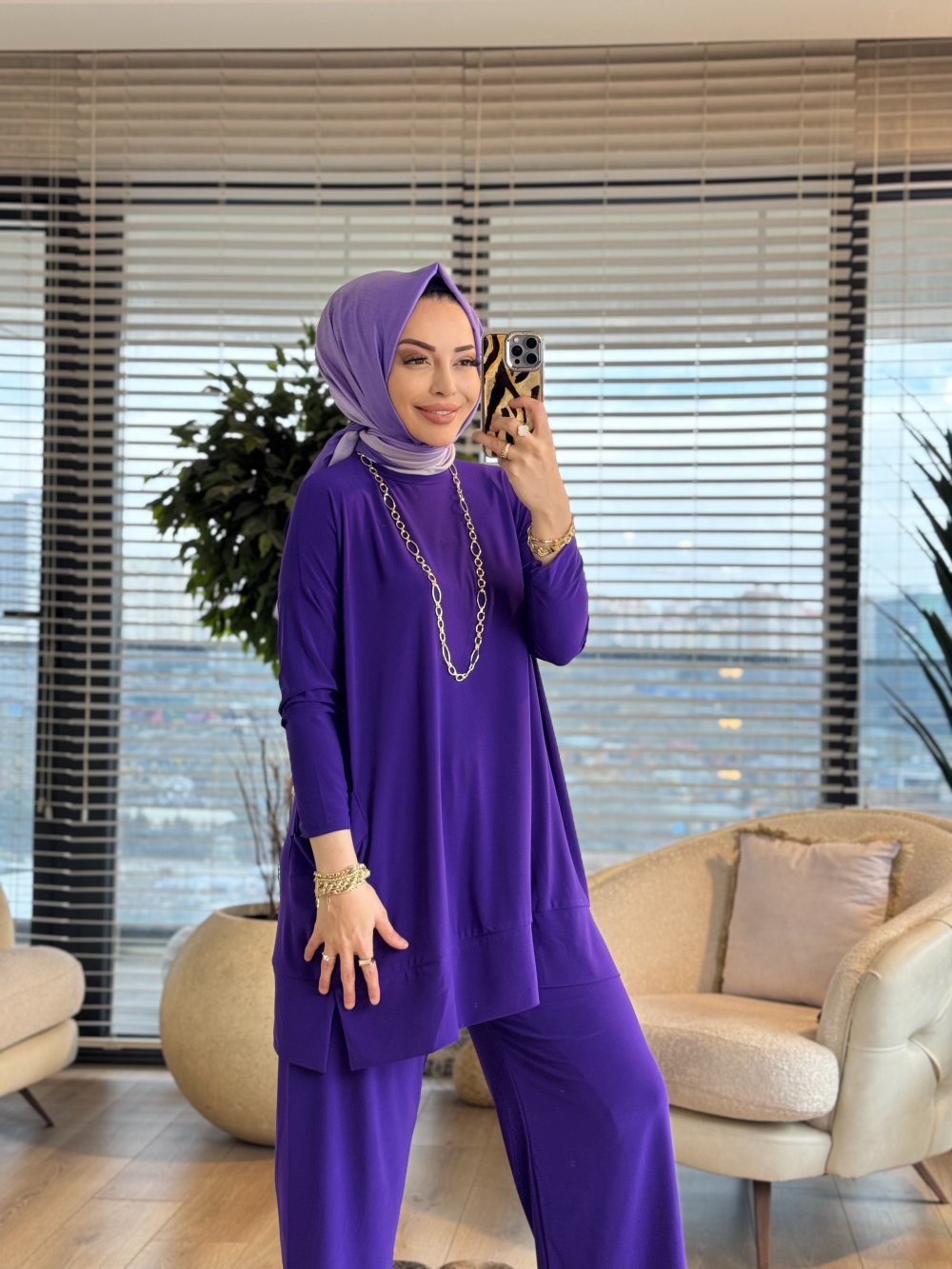 5015 Yanları Cepli Sandy Takım Mor