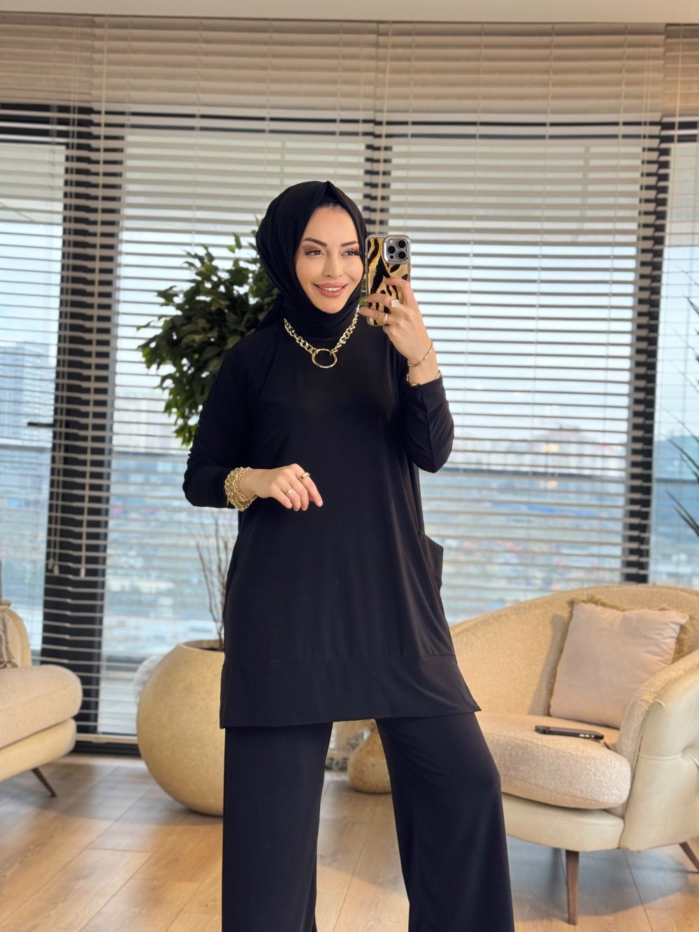 5015 Yanları Cepli Sandy Takım Siyah