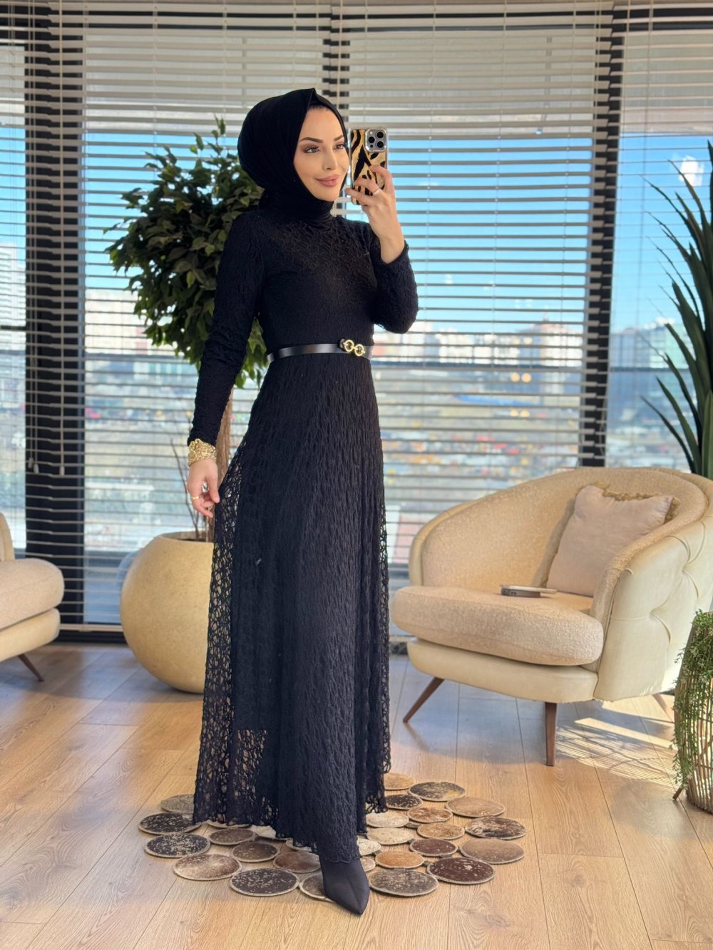 5280 Dantel Kemerli Elbise Siyah