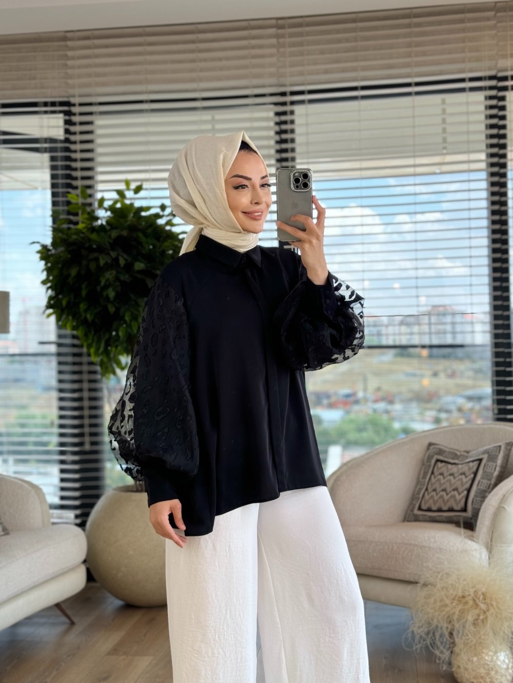 3945 Uzun Kol Orta Boy Bluz Siyah