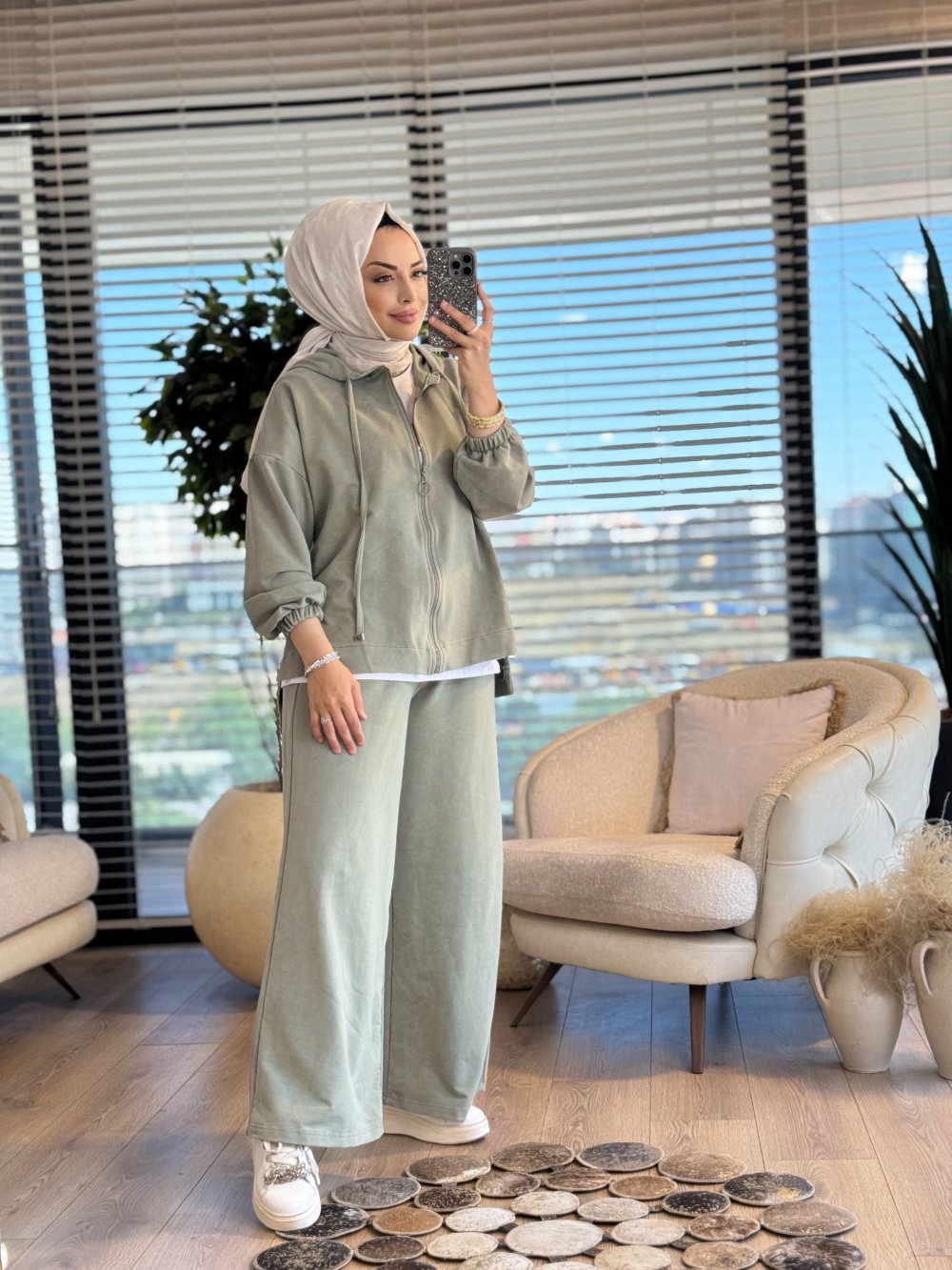 5935 Önü Fermuarlı Kapşonlu Takım Çağla