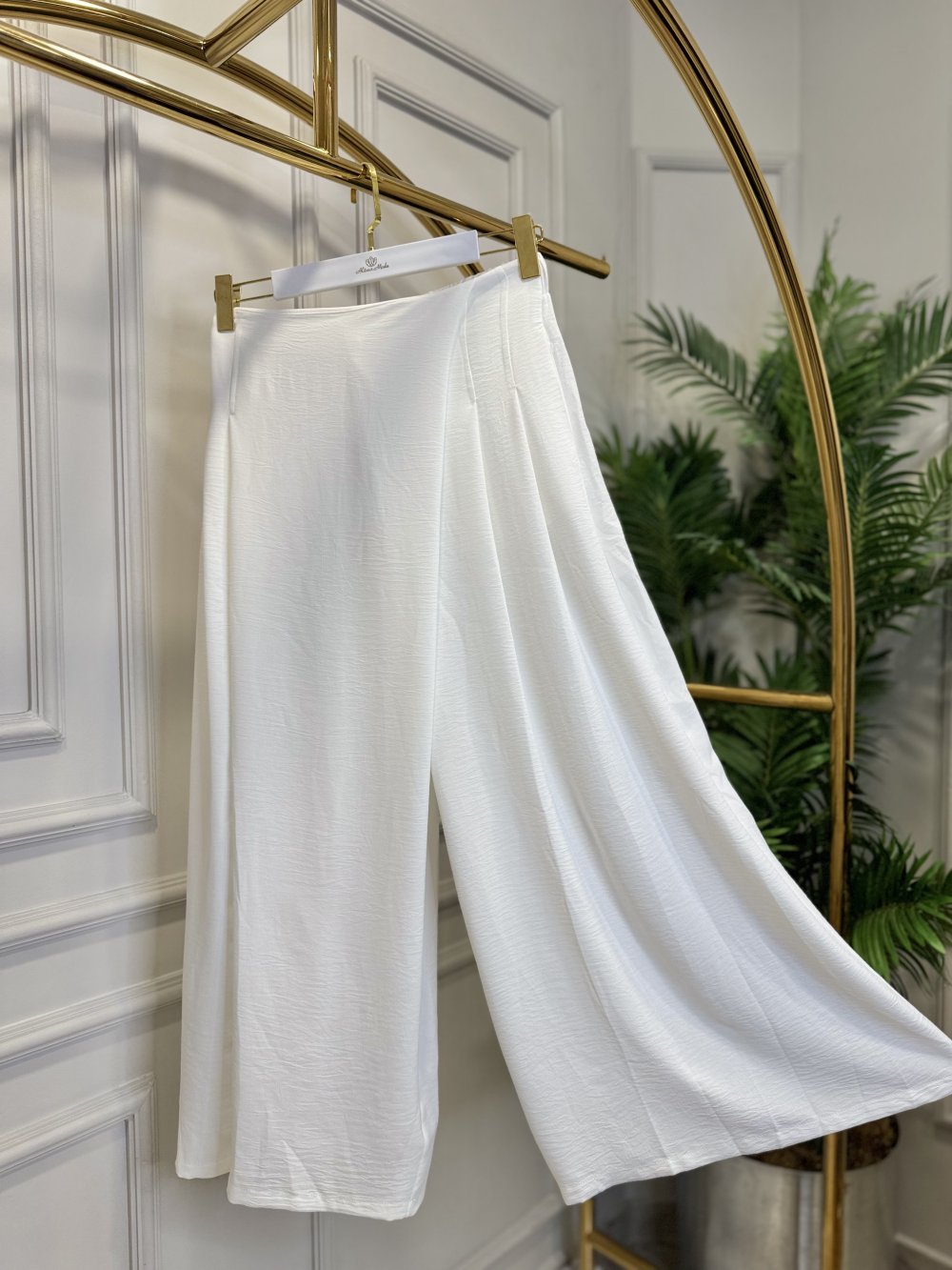 6112 Önü Parçalı Pantolon Etek Ekru