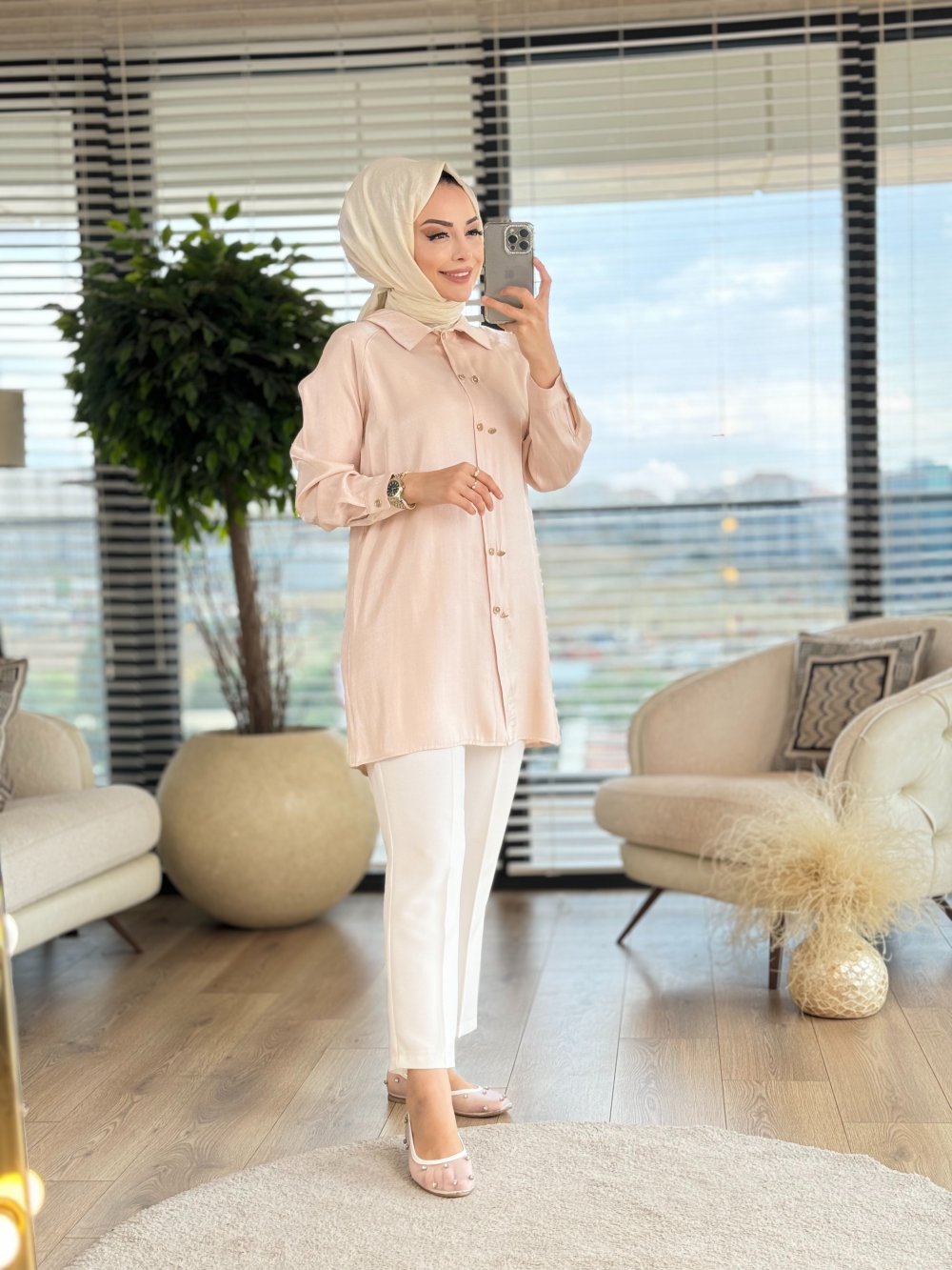 6183 Çift Düğmeli Tunik Bej