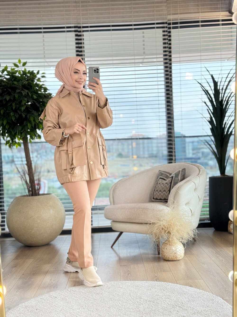 7021 Deri Ceket Bej