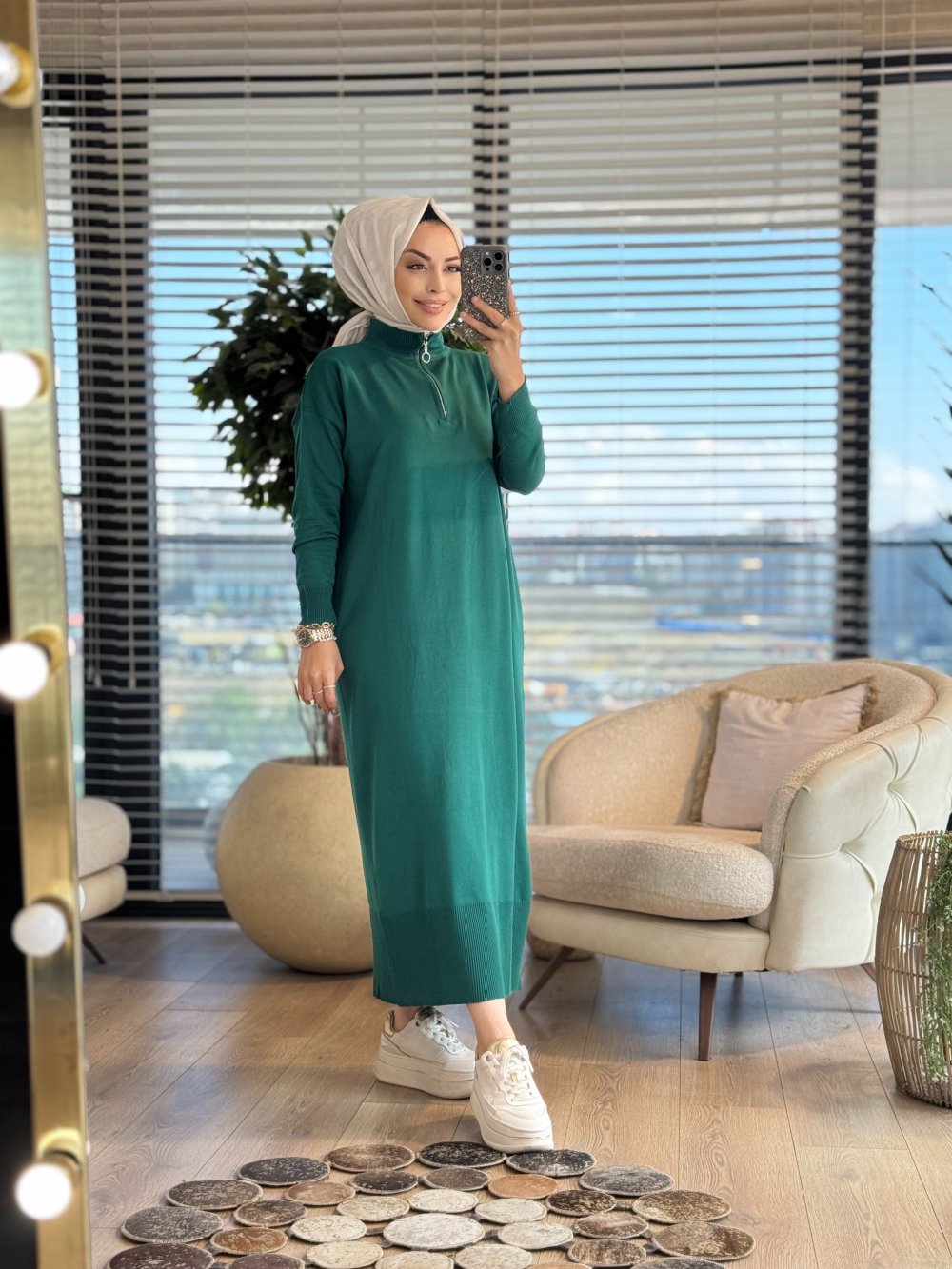 7025 Patı Fermuarlı Vanezia Elbise Zümrüt