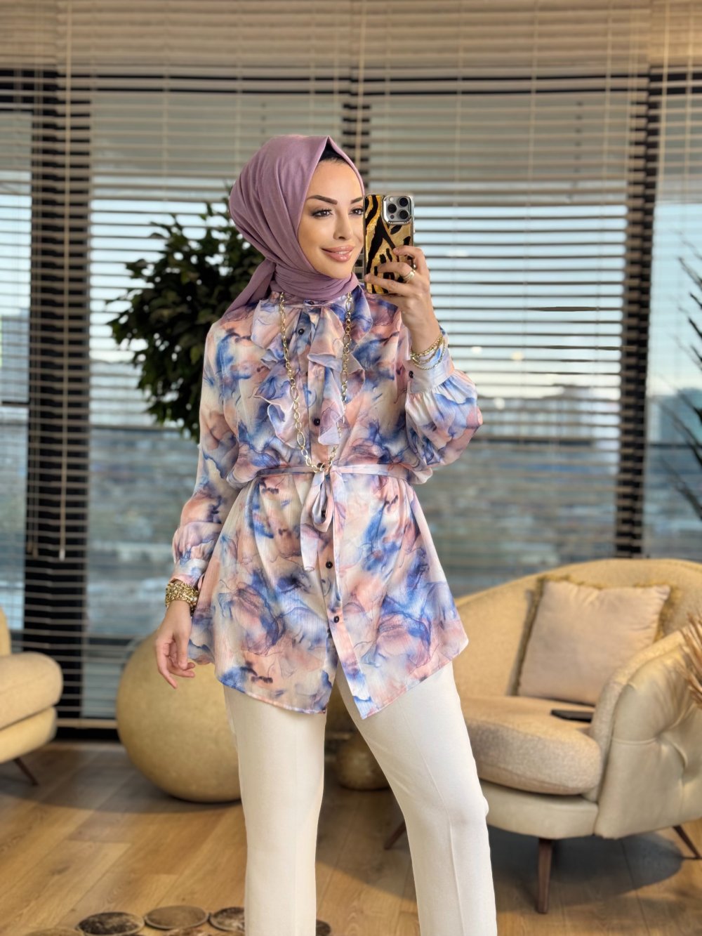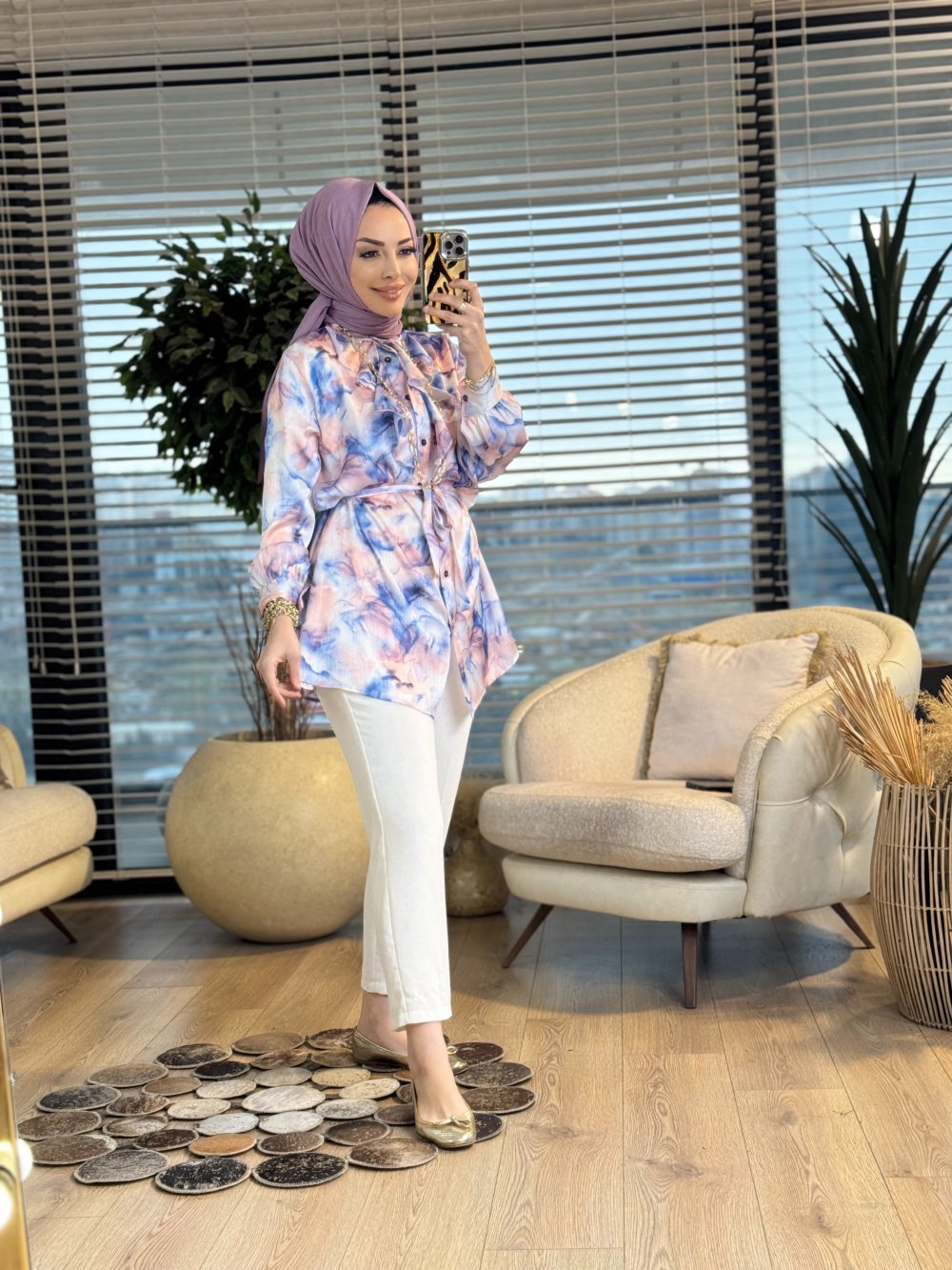 2033 Kumsal Batik Desen Tunik Lila