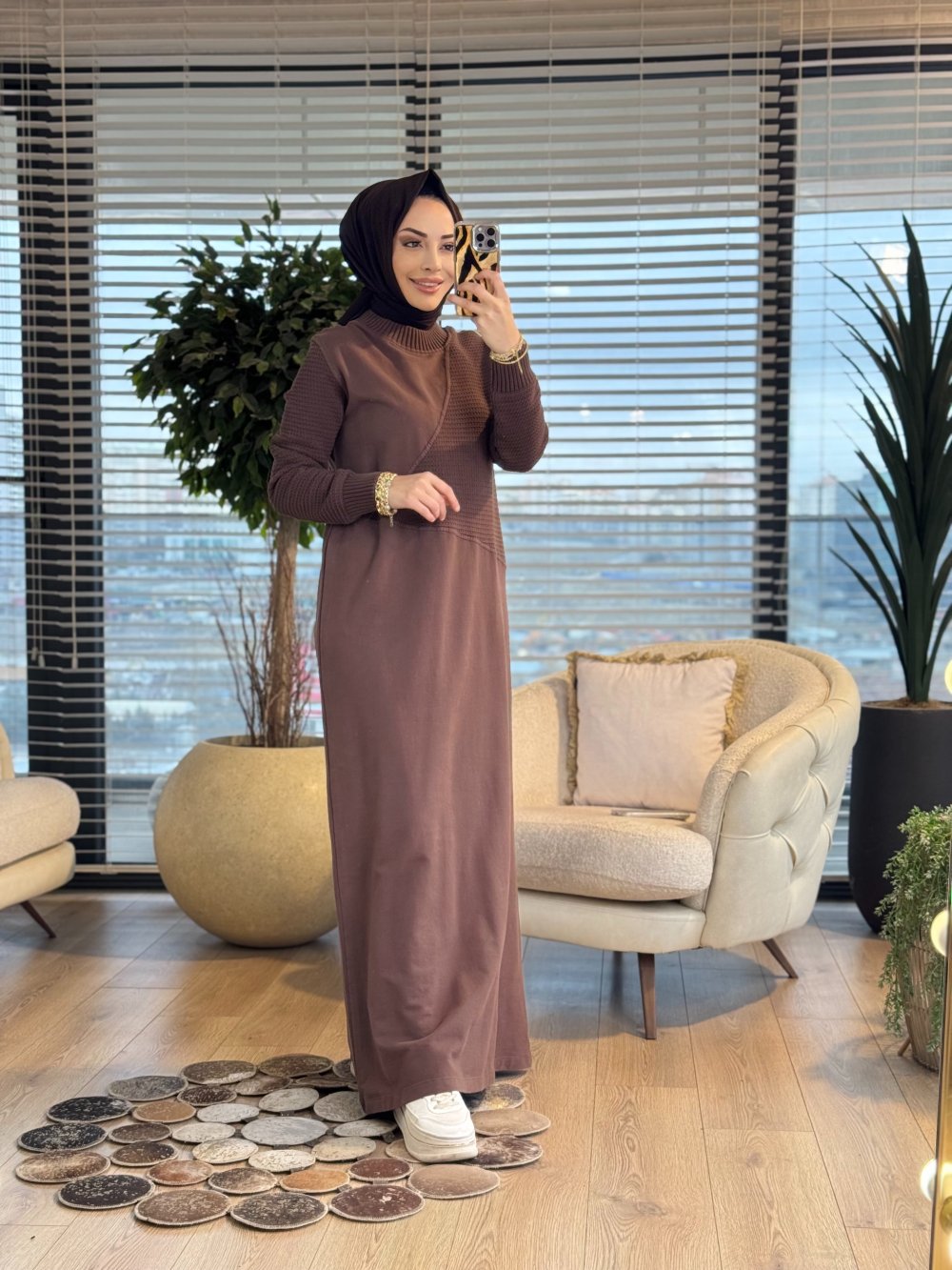 7187 Nokta Örgü İki İplik Elbise Kahve