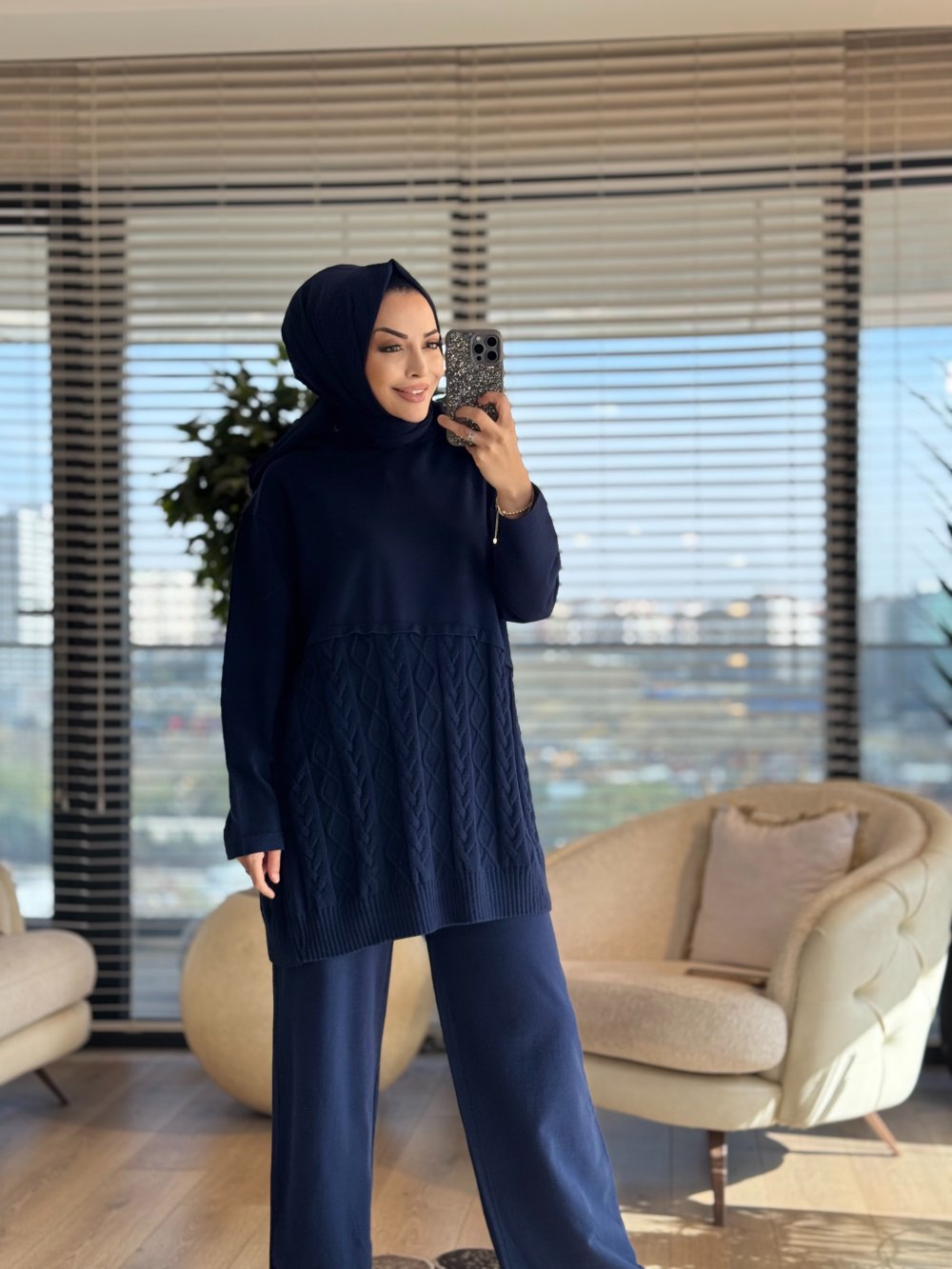 7222 İki İplik Saç Örgülü Takım Lacivert