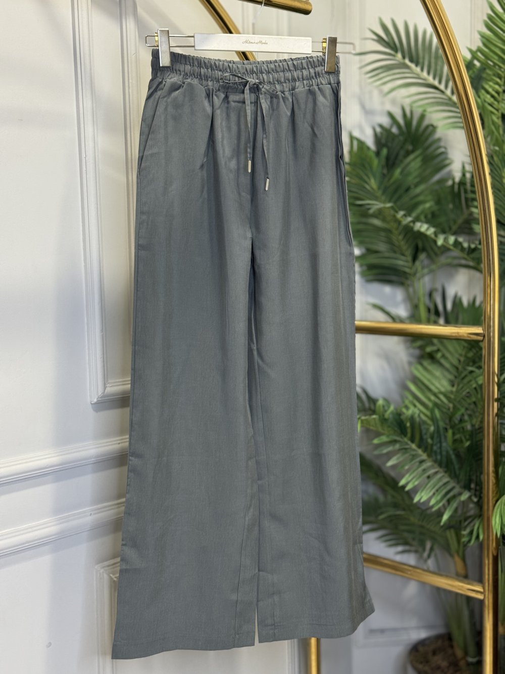 7272 Beli Lastikli Bol Paça Pantolon Gri