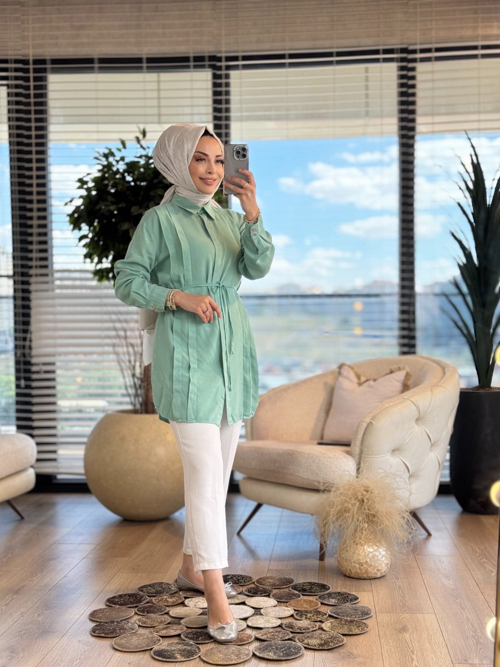 7322 Tencel Ön Pileli Gömlek Yeşil