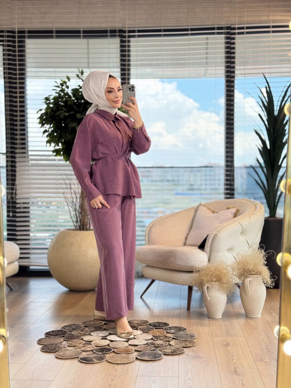 7367 Tencel Ön Cep Kapaklı Takım Mürdüm