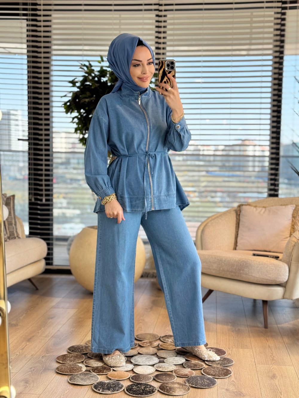7428 Tencel Önden Fermuarlı Takım Mavi