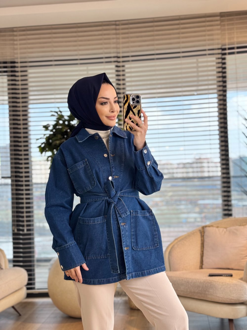 7448 Kot Önü Üç Cepli Ceket Mavi