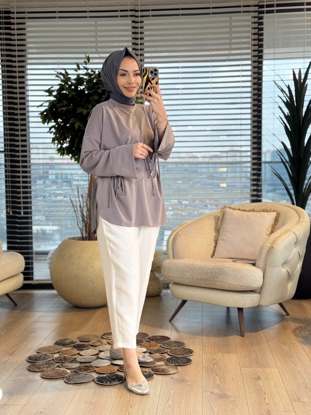 7465 Oysho Kolları Bağcıklı Tunik Gri