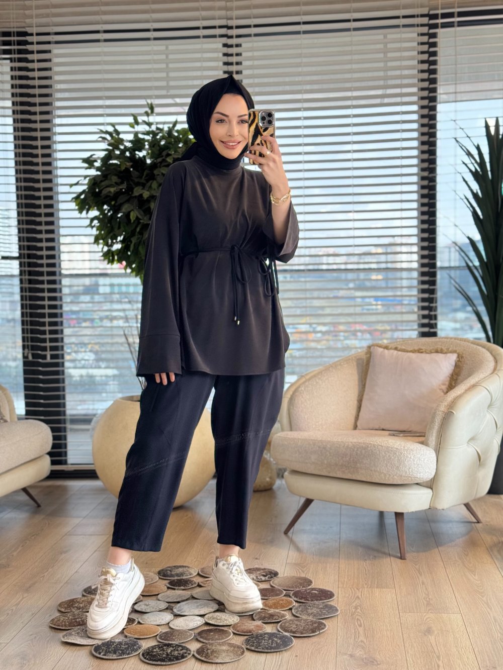 7465 Oysho Kolları Bağcıklı Tunik Siyah