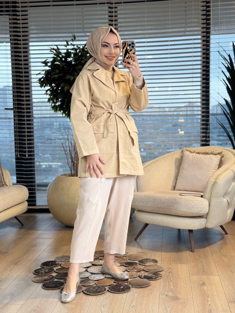 7507 Şal Dügmesiz Kot Trenç Lacivert
