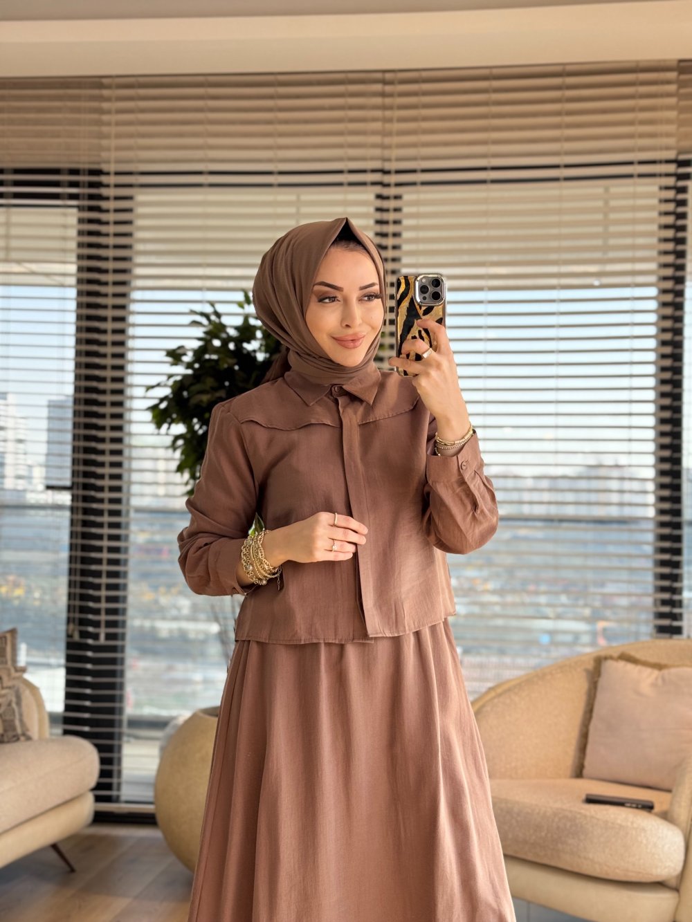 7510 Omzu Parçalı Etekli Takım Lacivert