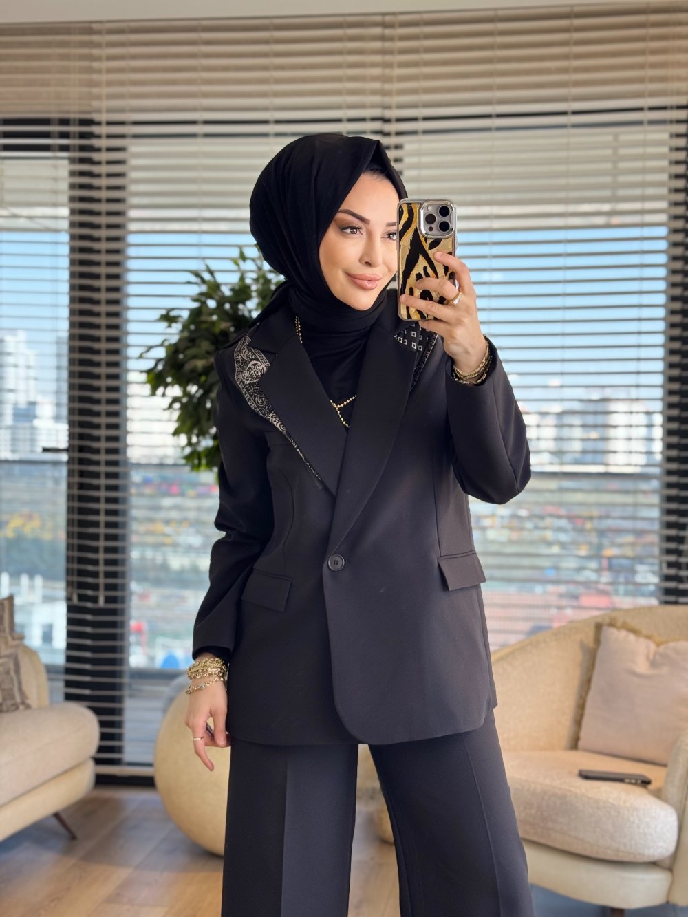7665 Fular Detaylı Blazer Ceket Siyah