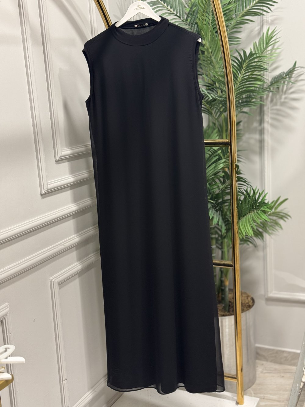 778 Ön Şifon Kolsuz Uzun Elbise Siyah