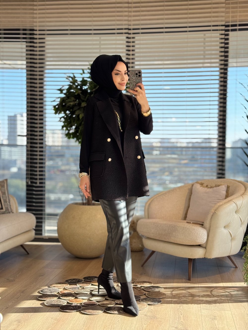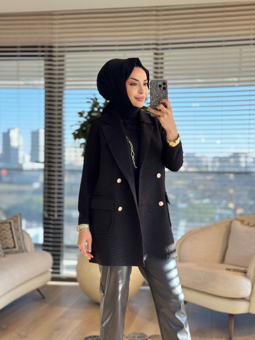 7889 Bukle Dört Düğmeli Yelek Siyah
